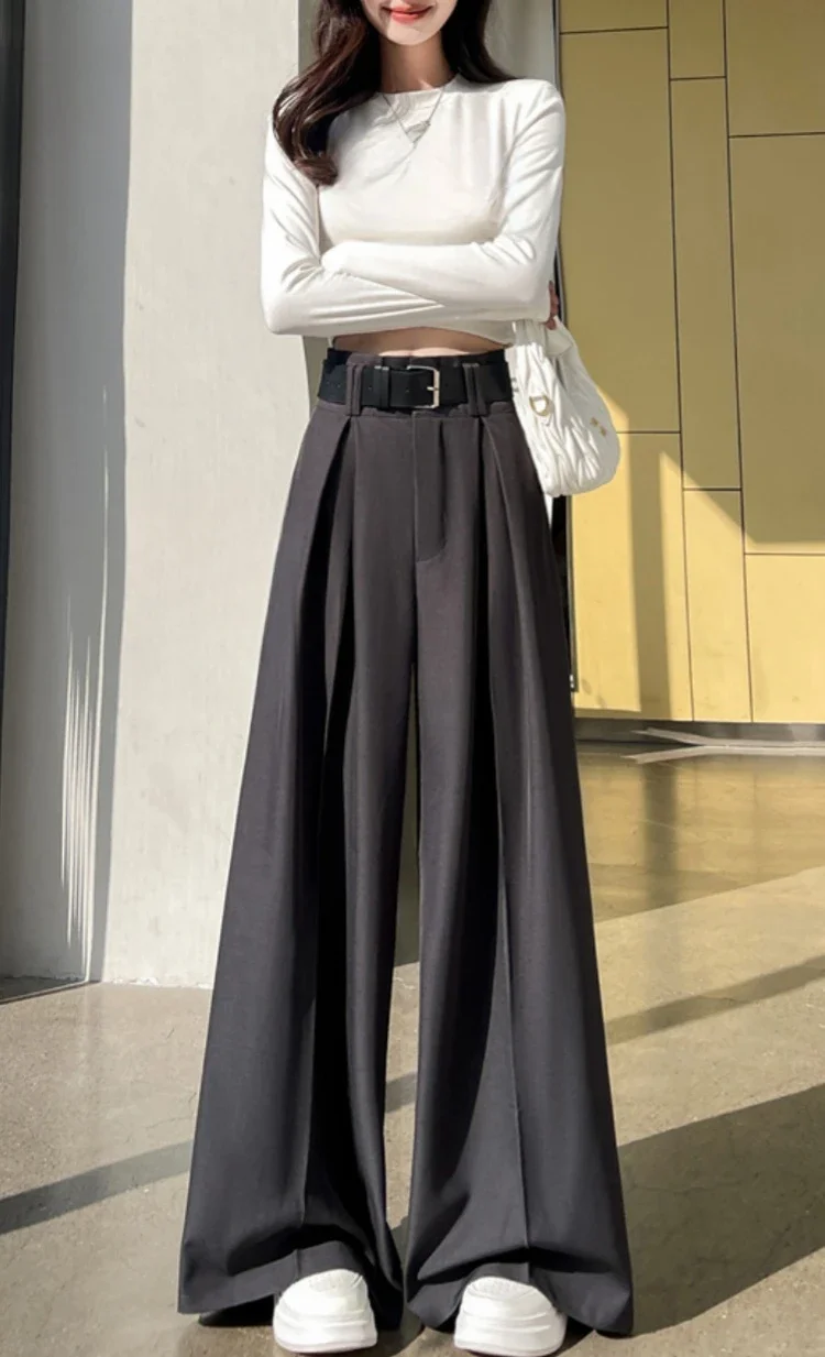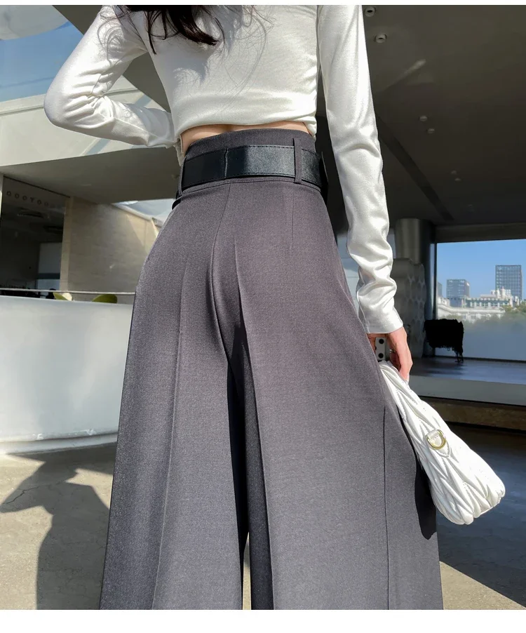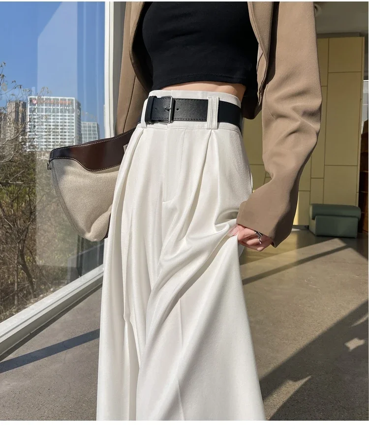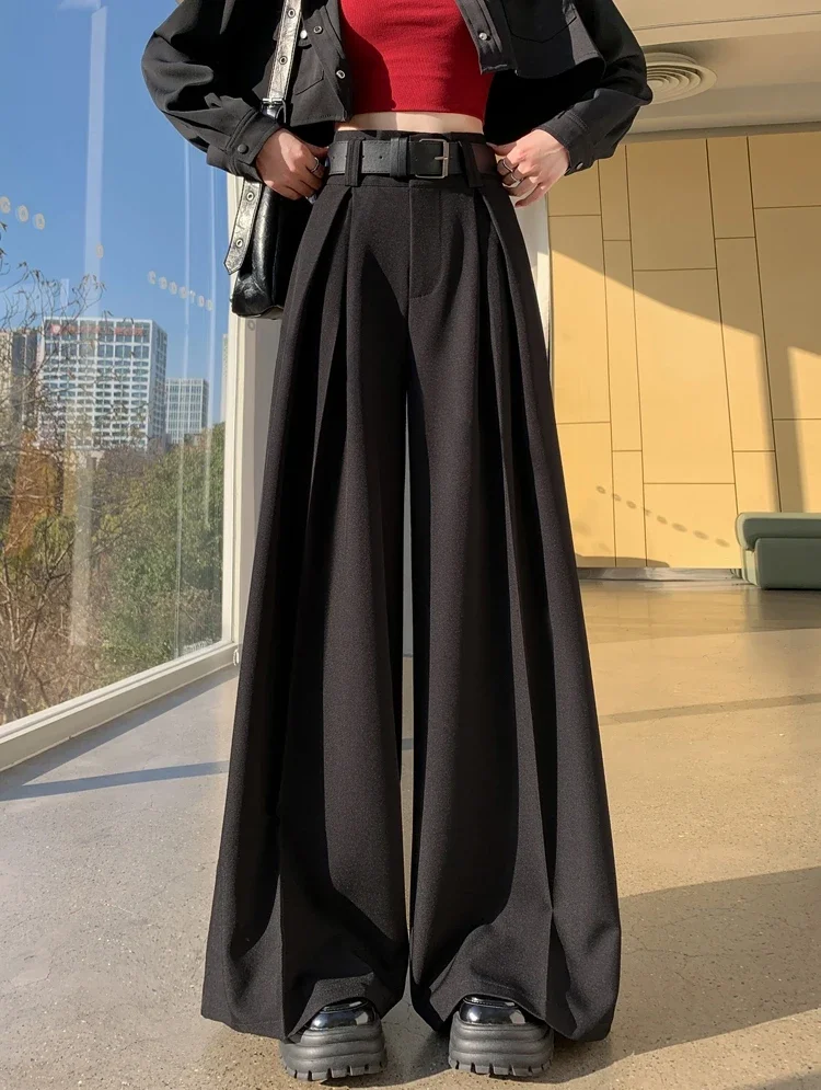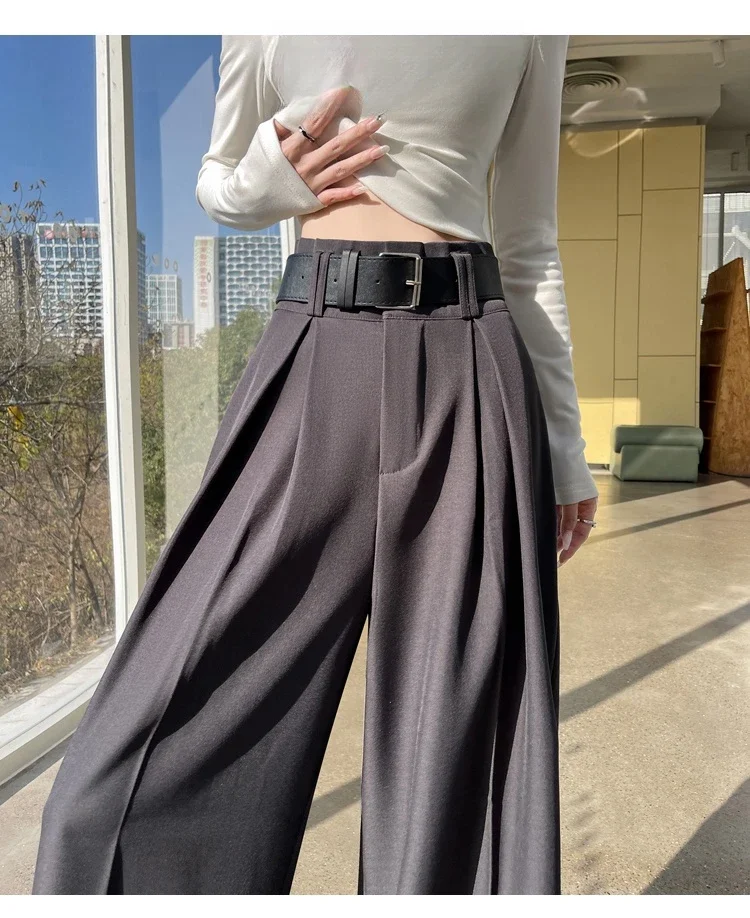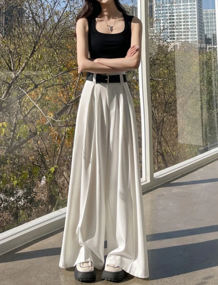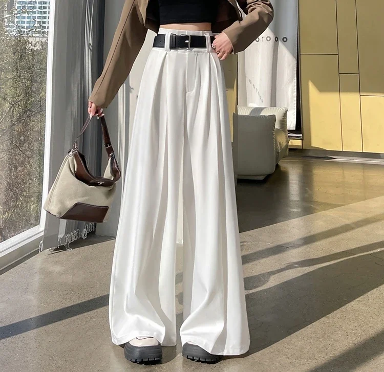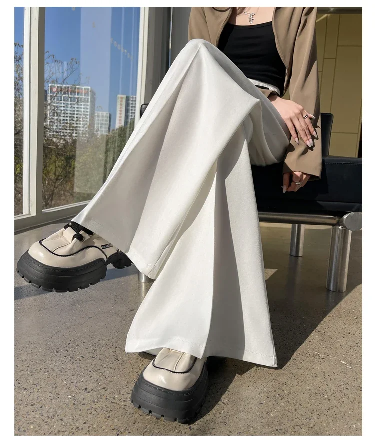 2025 New Spring Summer Casual Loose Women's Wide Leg Full Length Pants High Waist Solid Female Elegant Straight Trousers