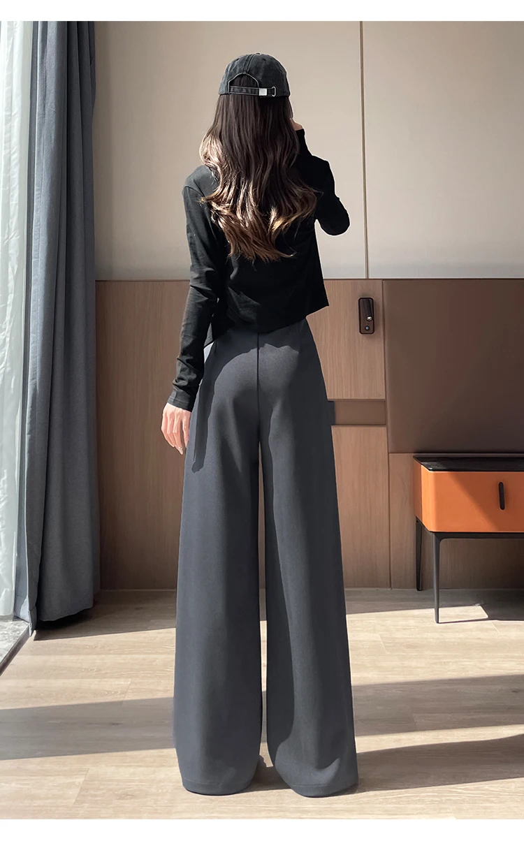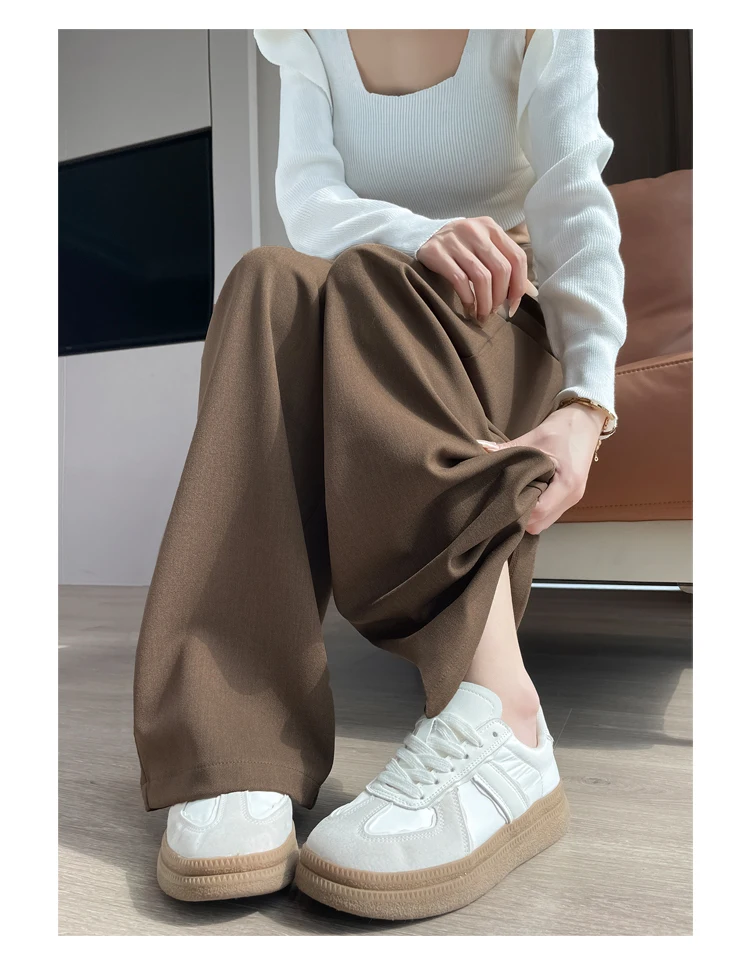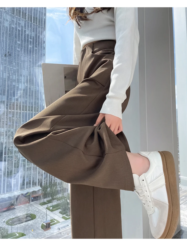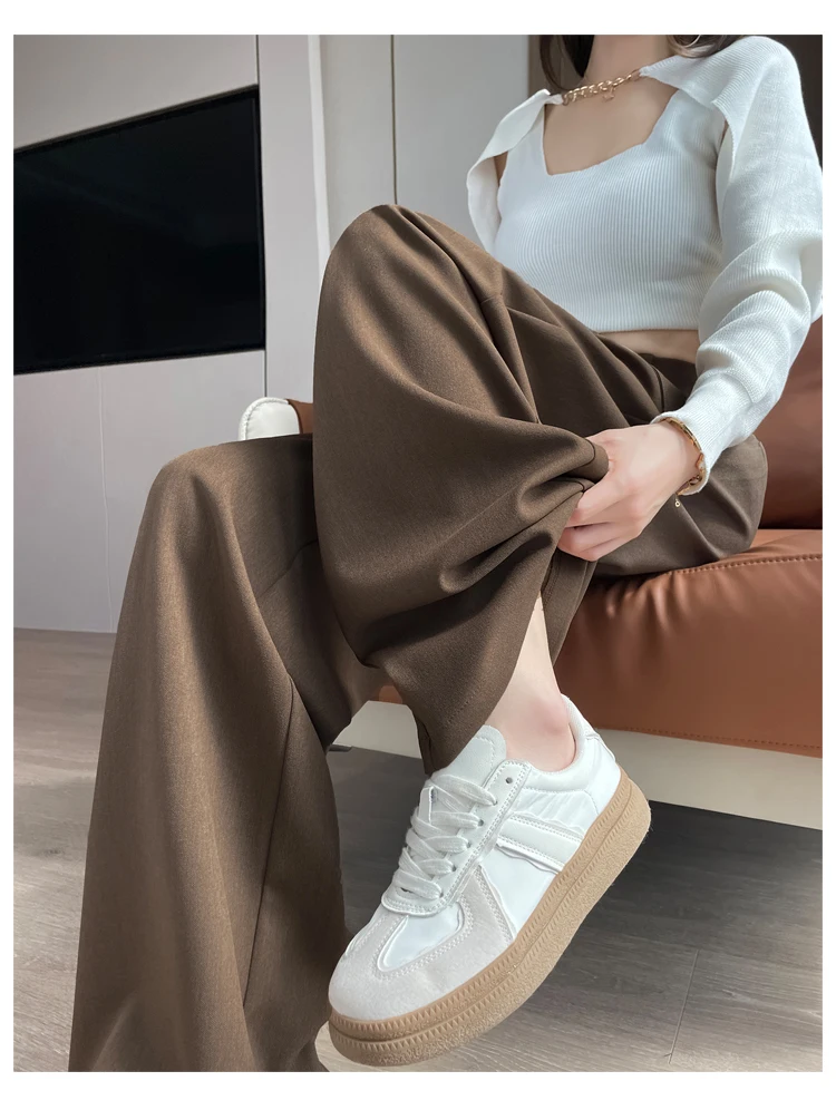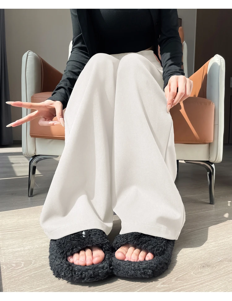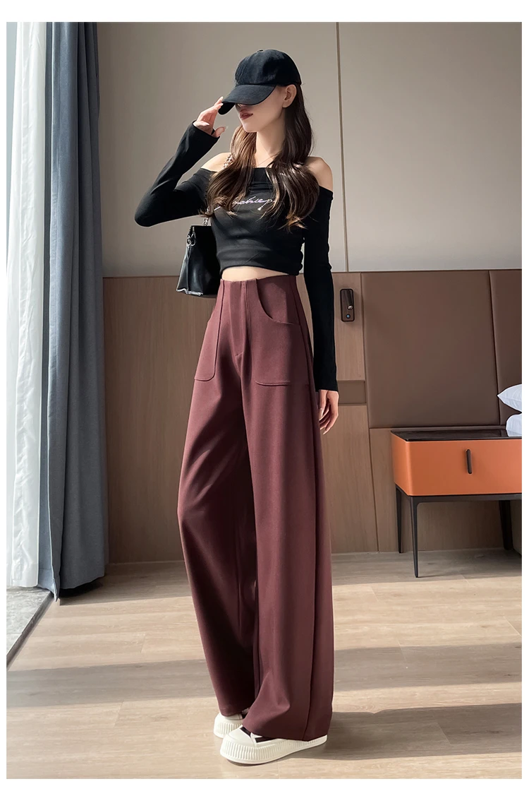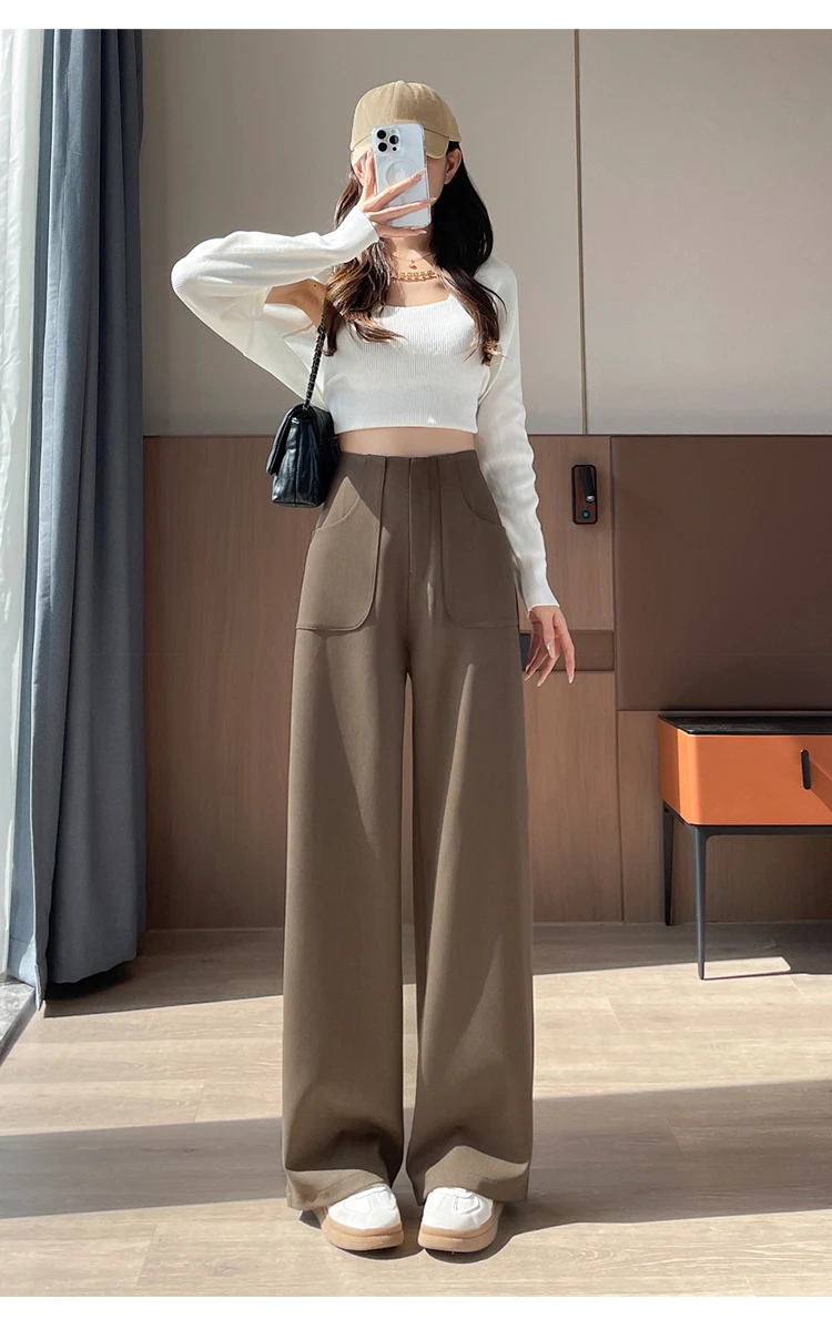 2025 New Spring Summer White Pockets Wide Leg Pants for Women Elegant Solid Office Lady Korean Women's Casual Loose Pants Female