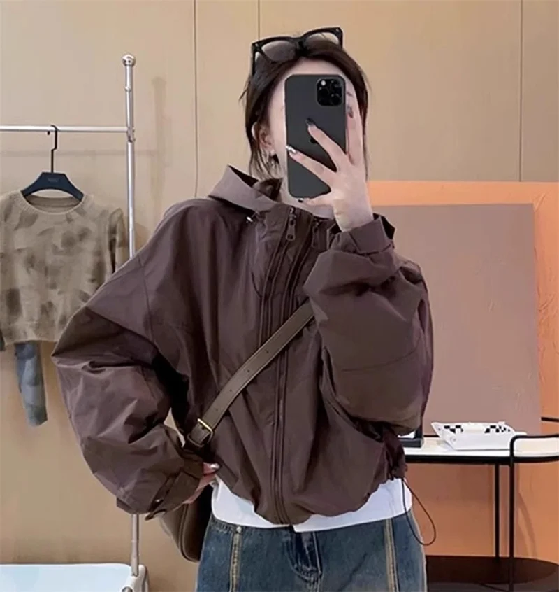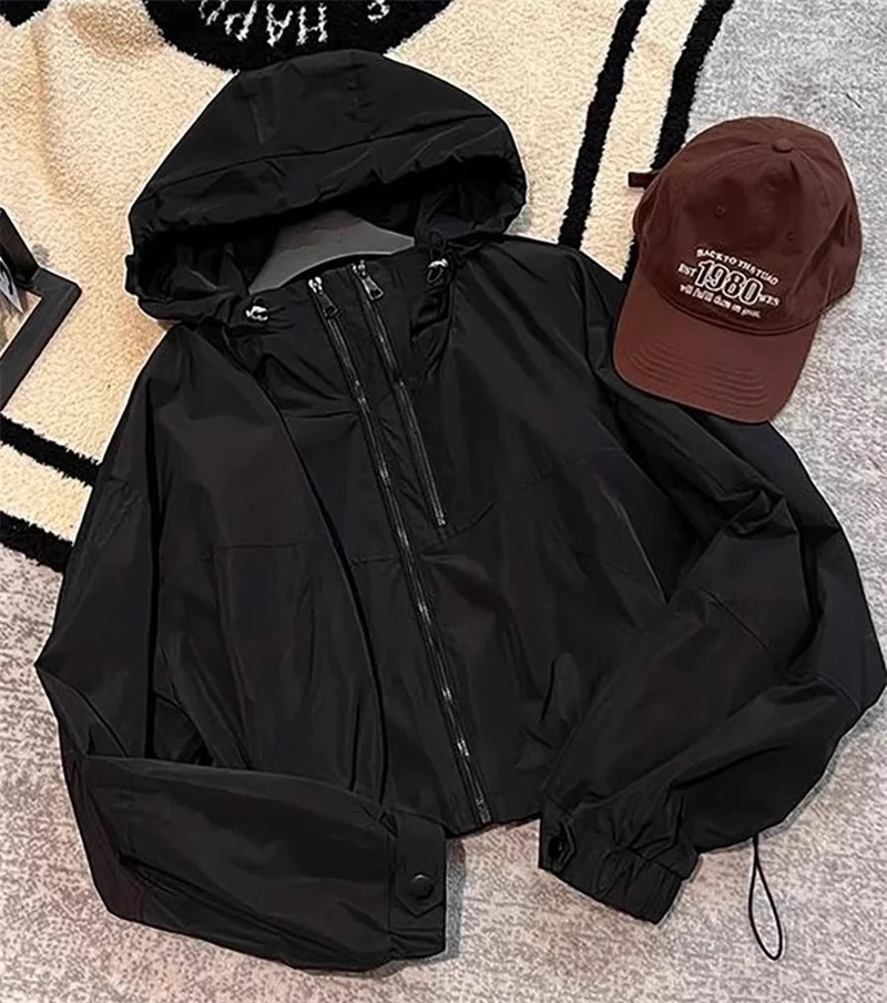2025 Summer Korean Style Windbreak Women's Spring Jackets Slim Sunscreen Clothing White Hooded Coat Zipper Jacket Femme Thin