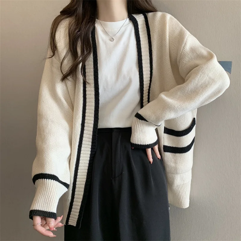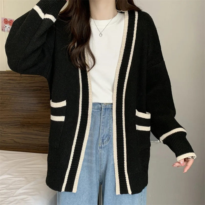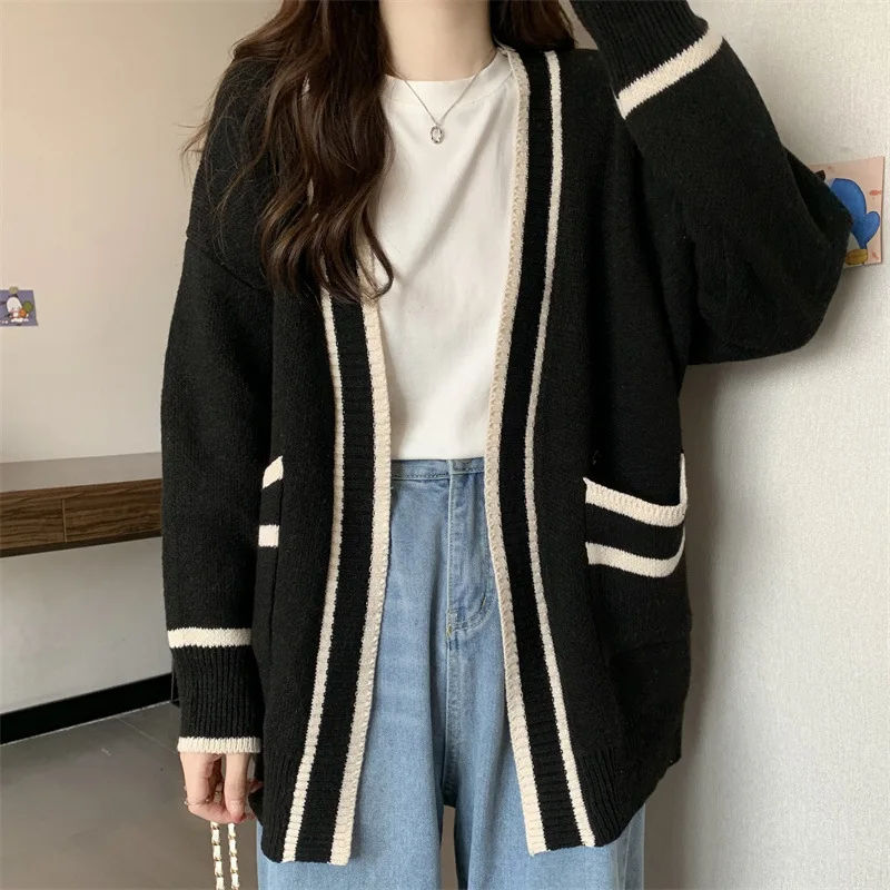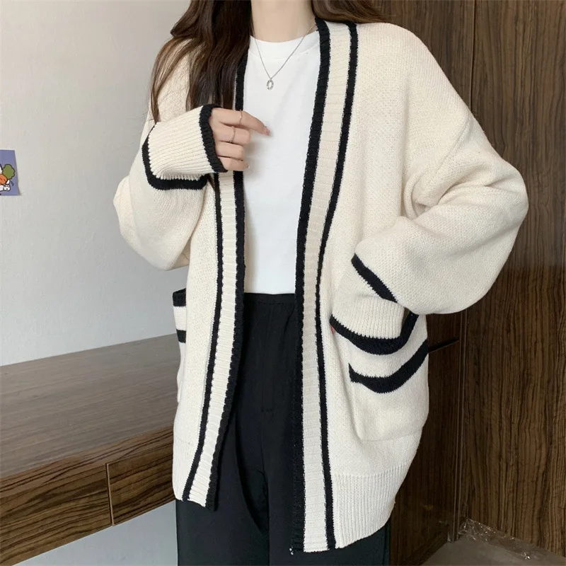 Autumn Winter New Korean Loose Women Knit Coat Mid Length Pocket Fashion Sweater Knitwears Cardigan Feminino Sueter