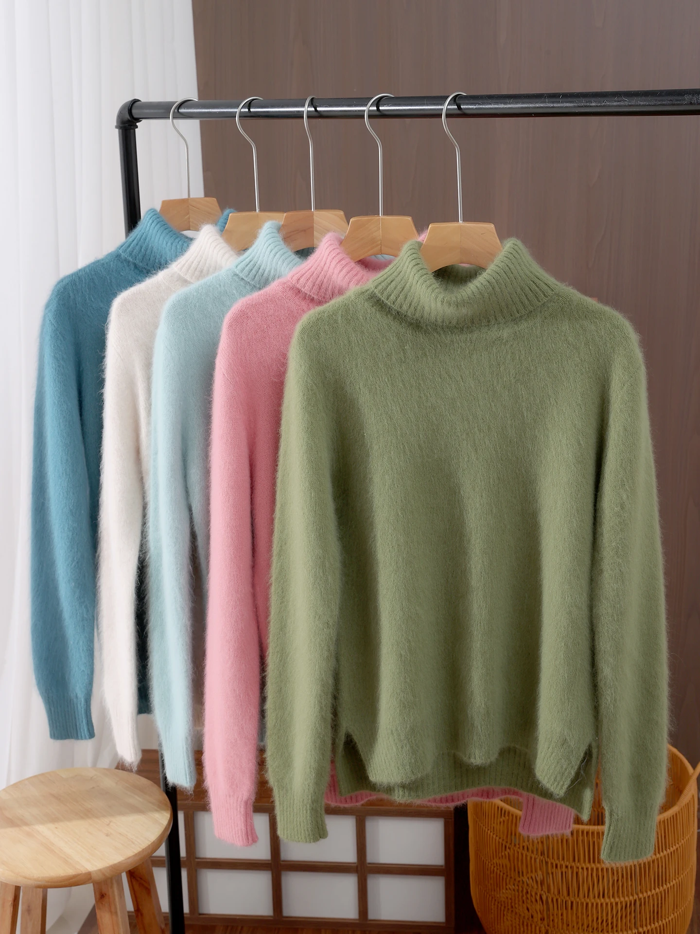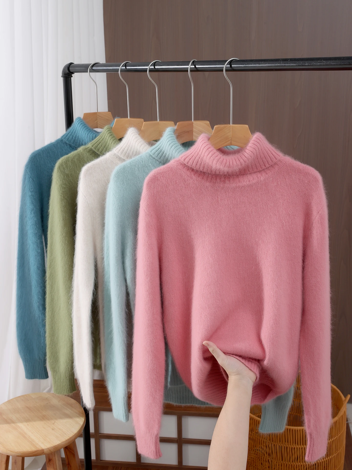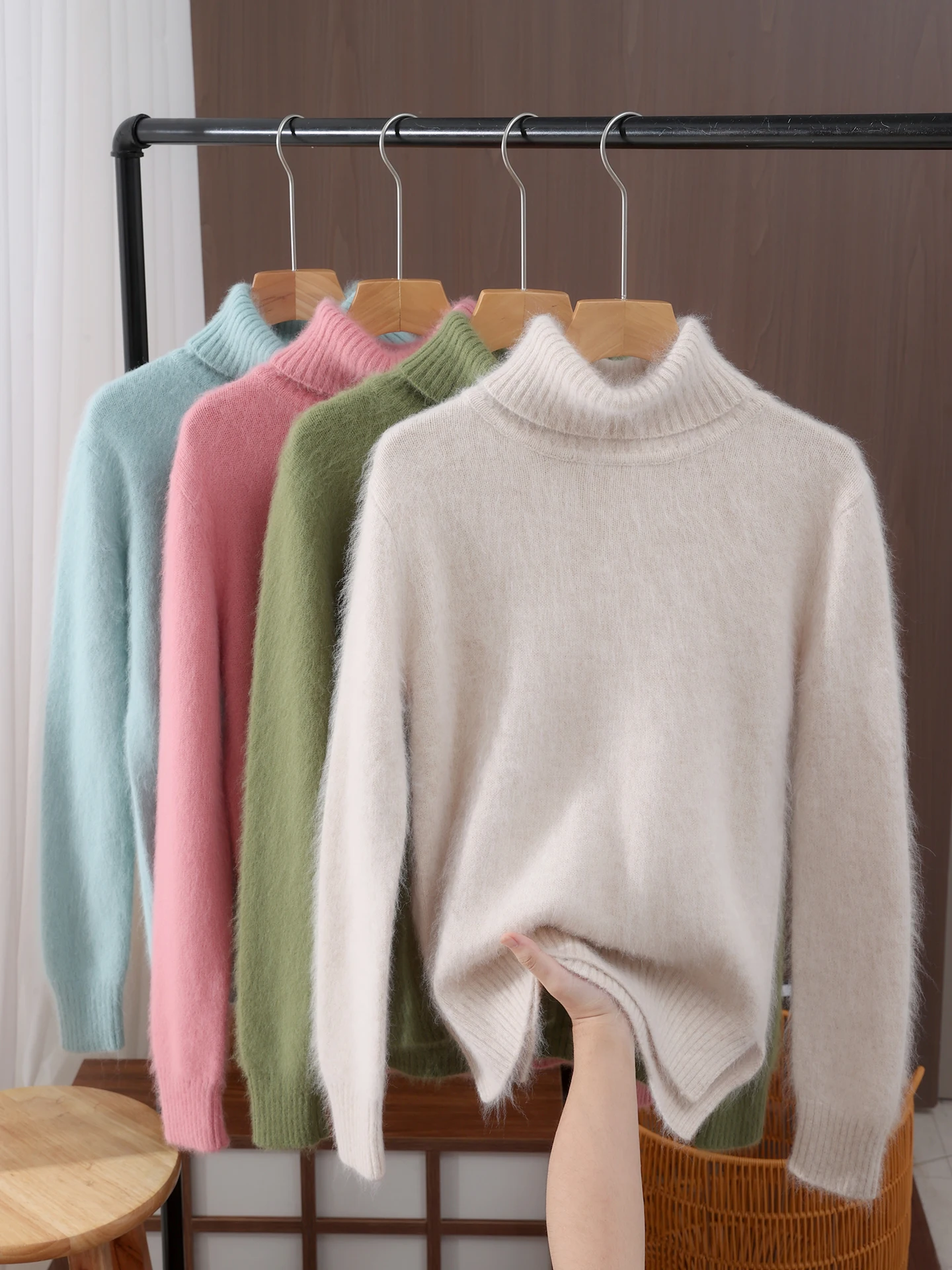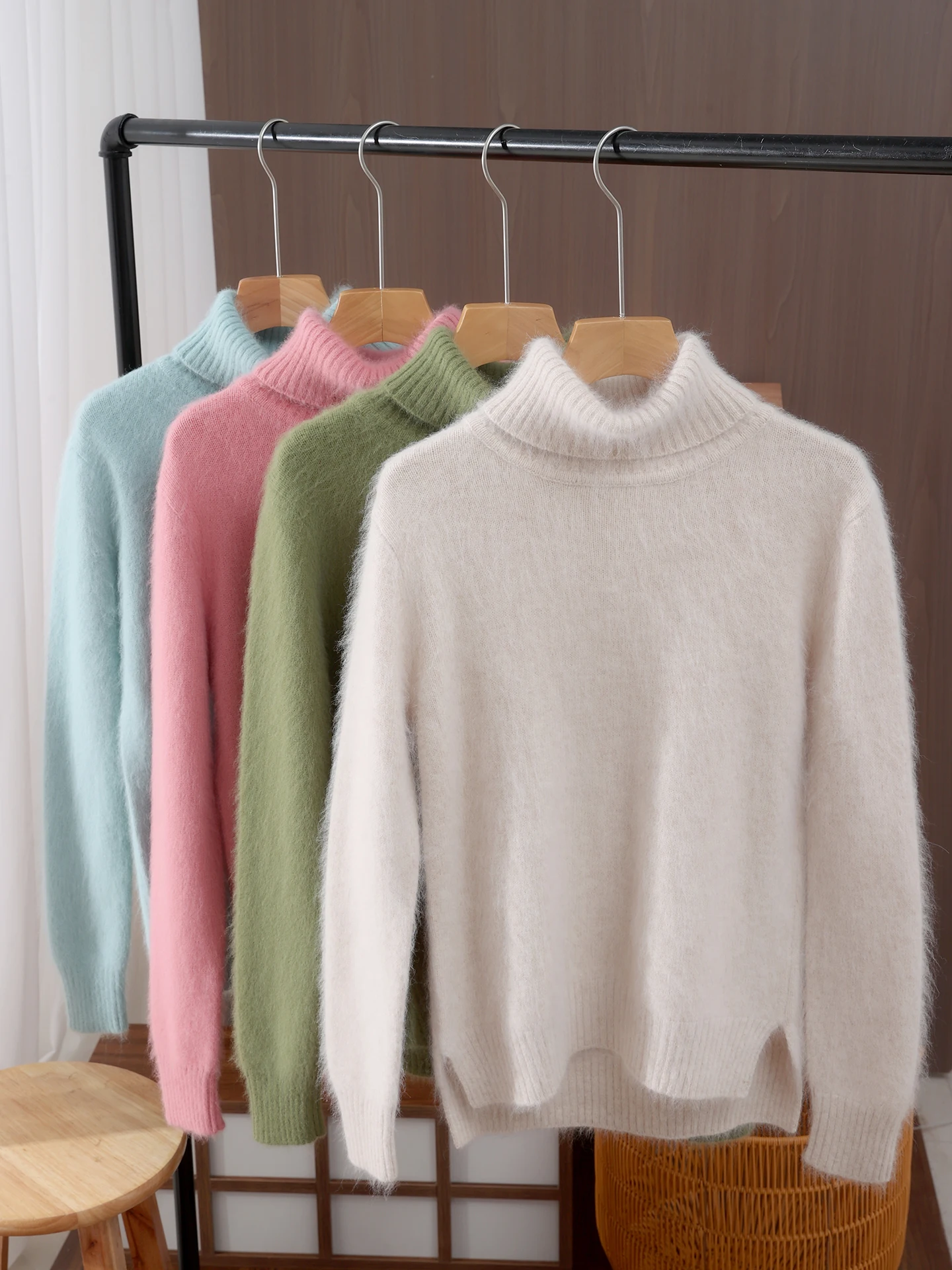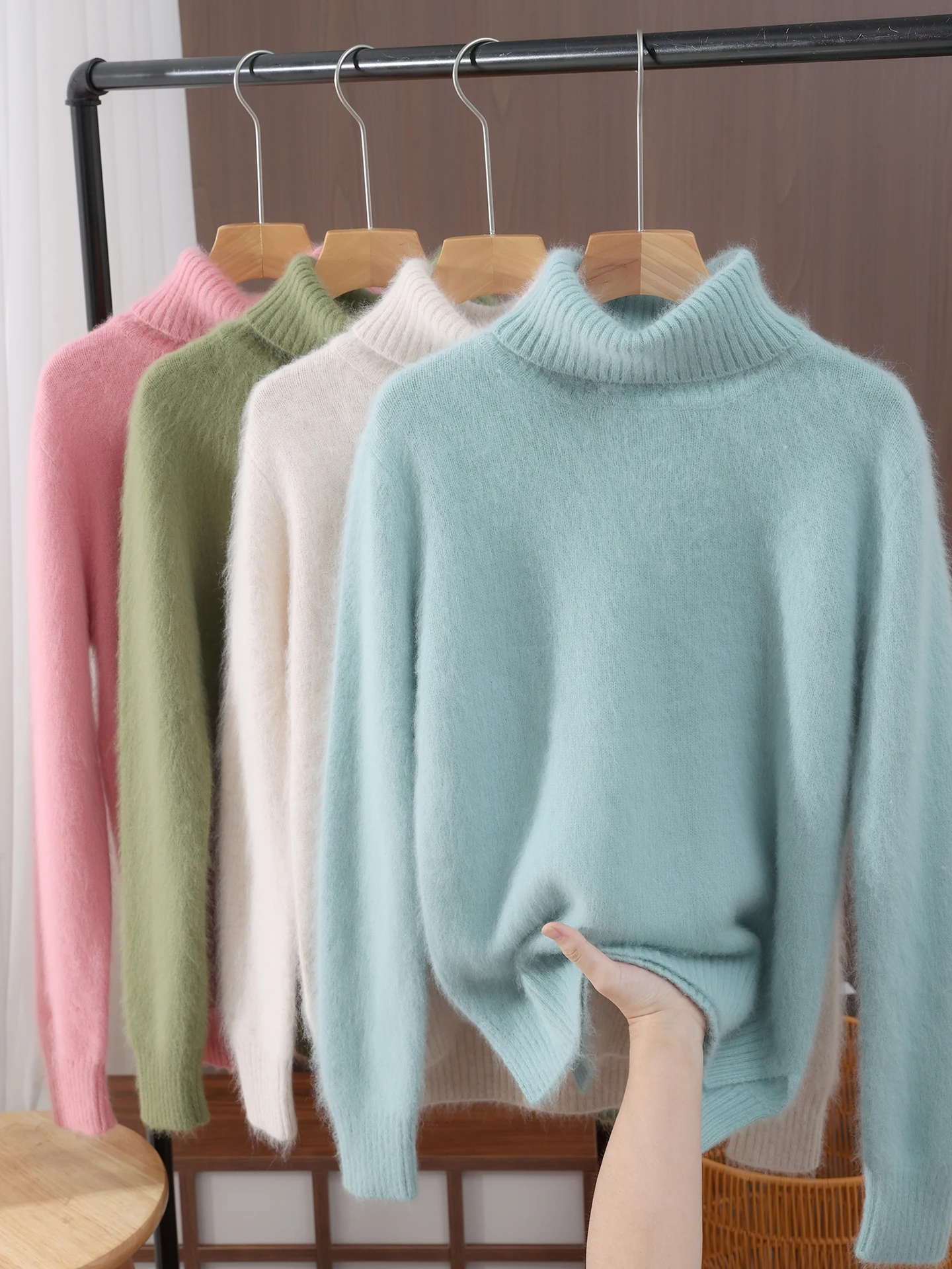 Autumn Winter Women 100% mink cashmere Sweater New Fashion Fur-feeling Pullover Lapel Sweater High Quality Woman Knitted Tops