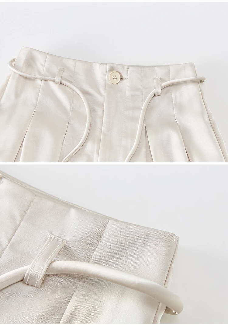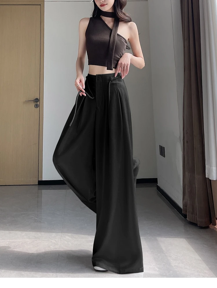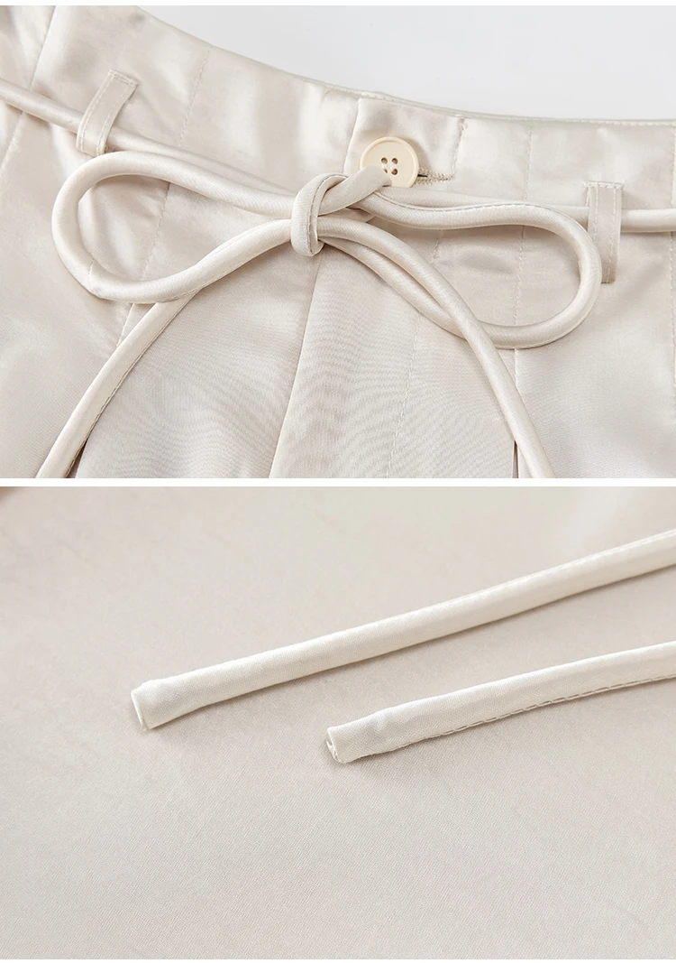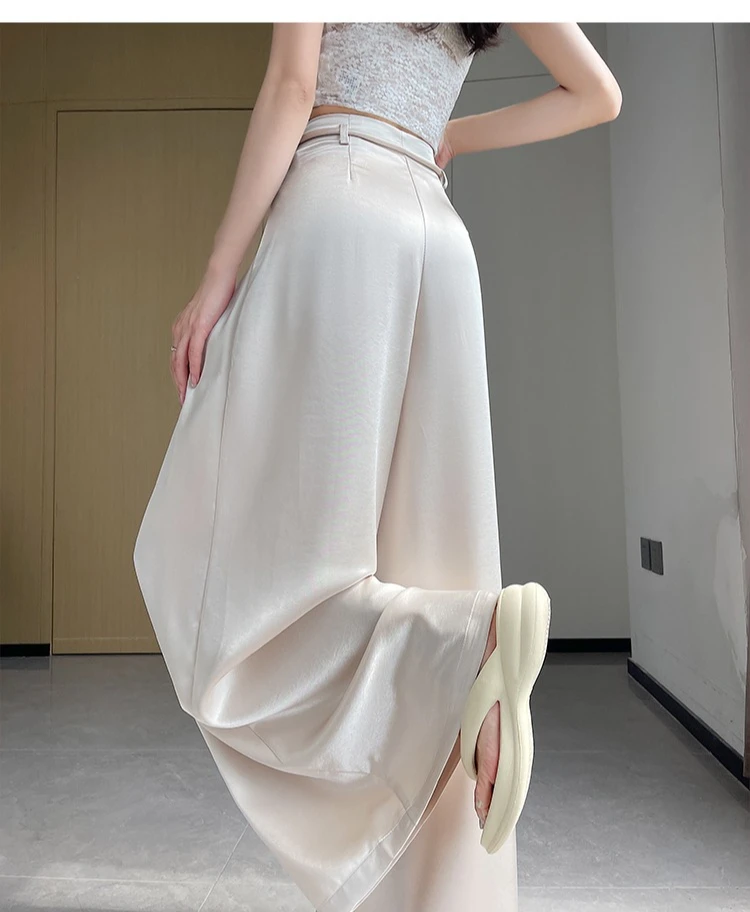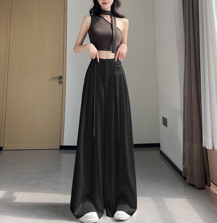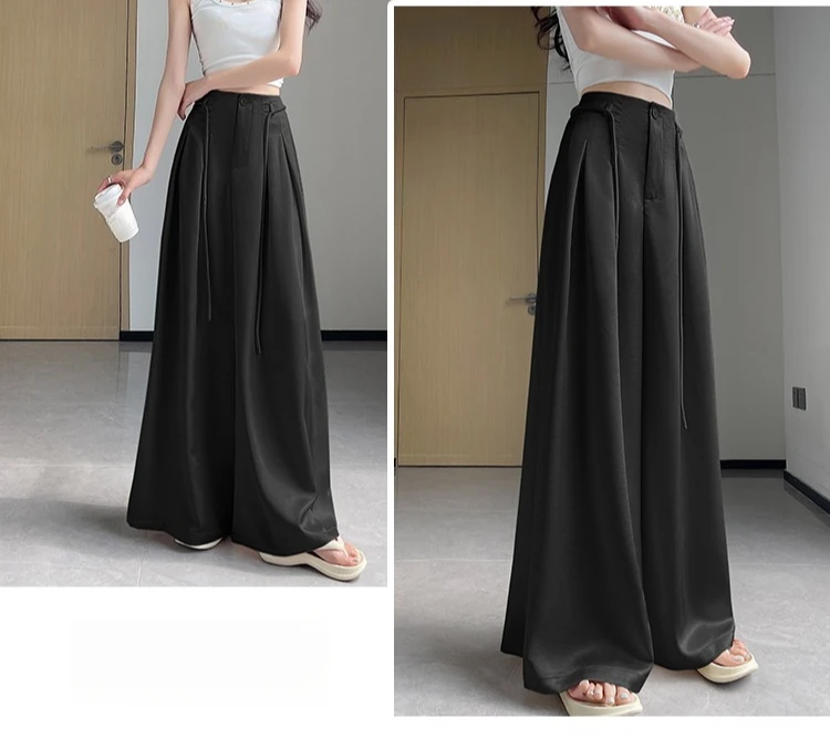 High Waist Elegant Satin Women's Wide Leg Full Length Pants 2025 New Solid Lace-up Autumn High Waist Casual Loose Trouser Female