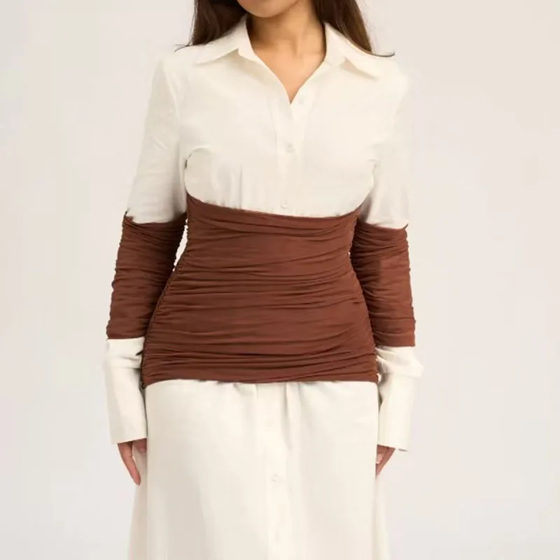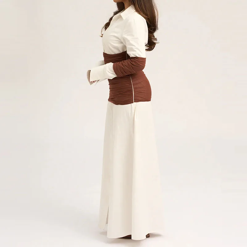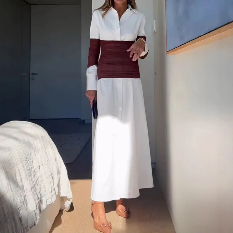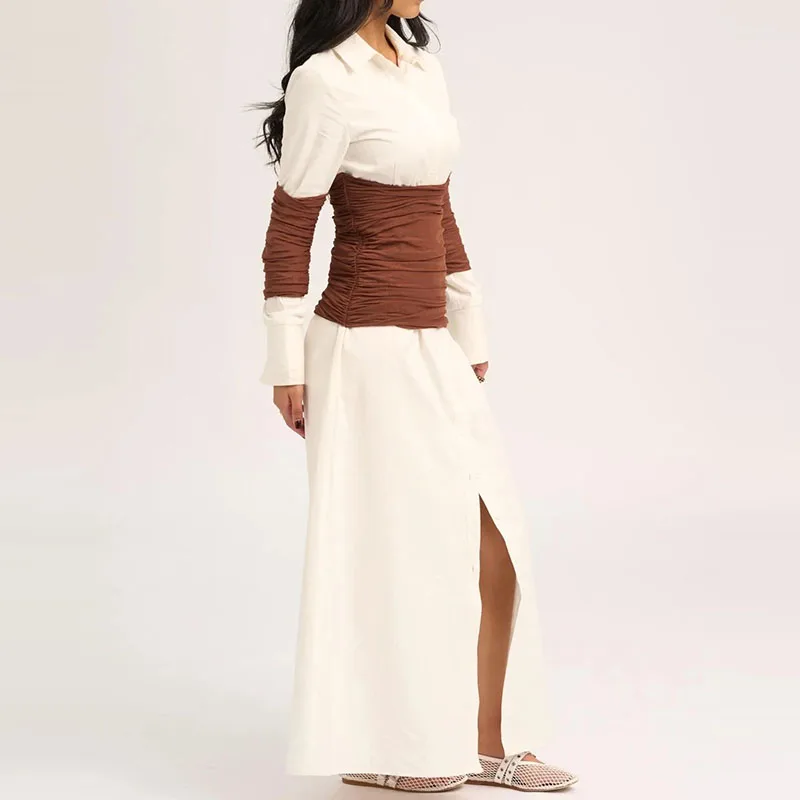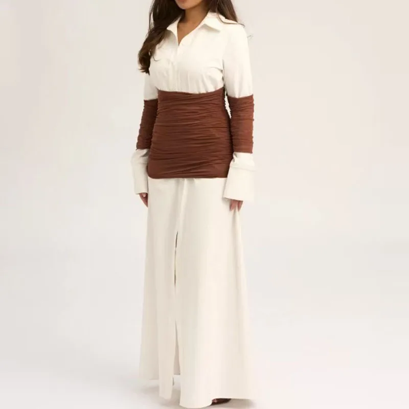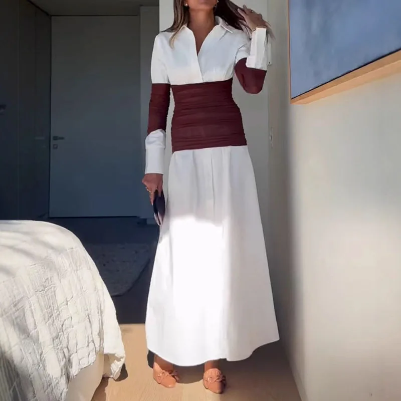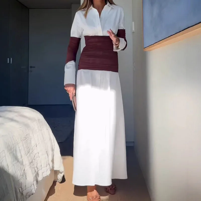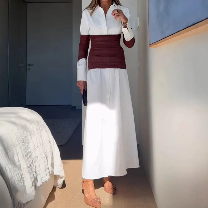 Ladies Fashion Lapel Collar Long Sleeve Party Dress Elegant Buttons Splicing Long Dress Casual Long Sleeve Draped Shirt Dresses