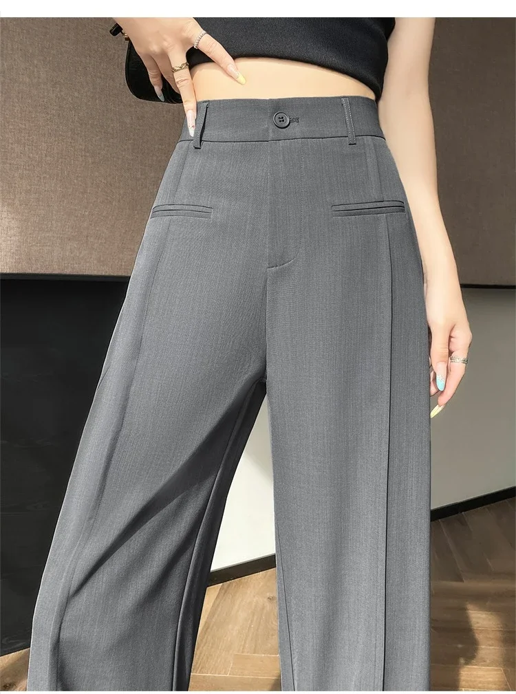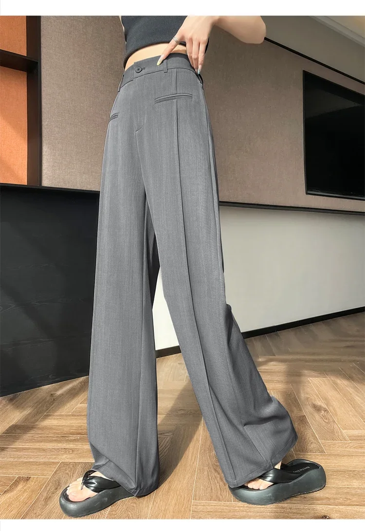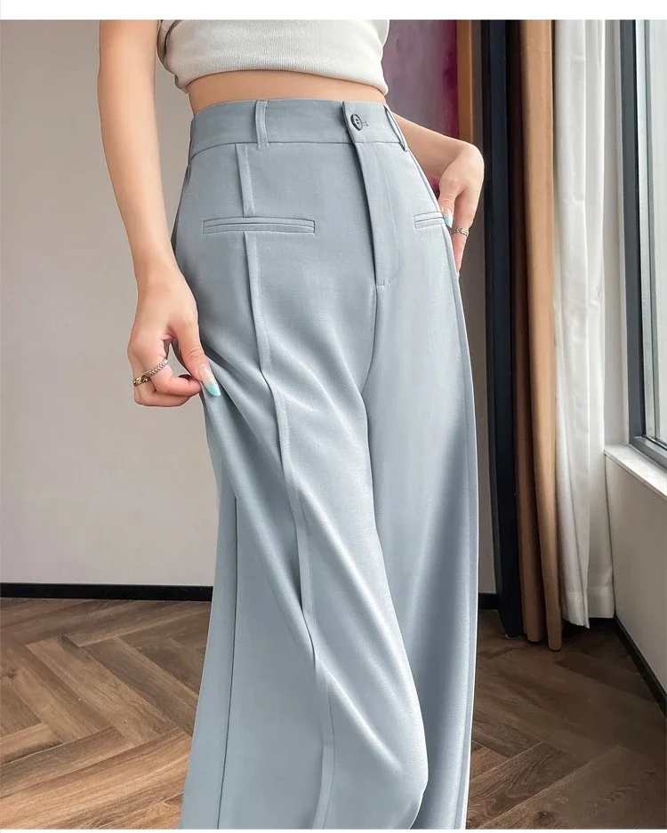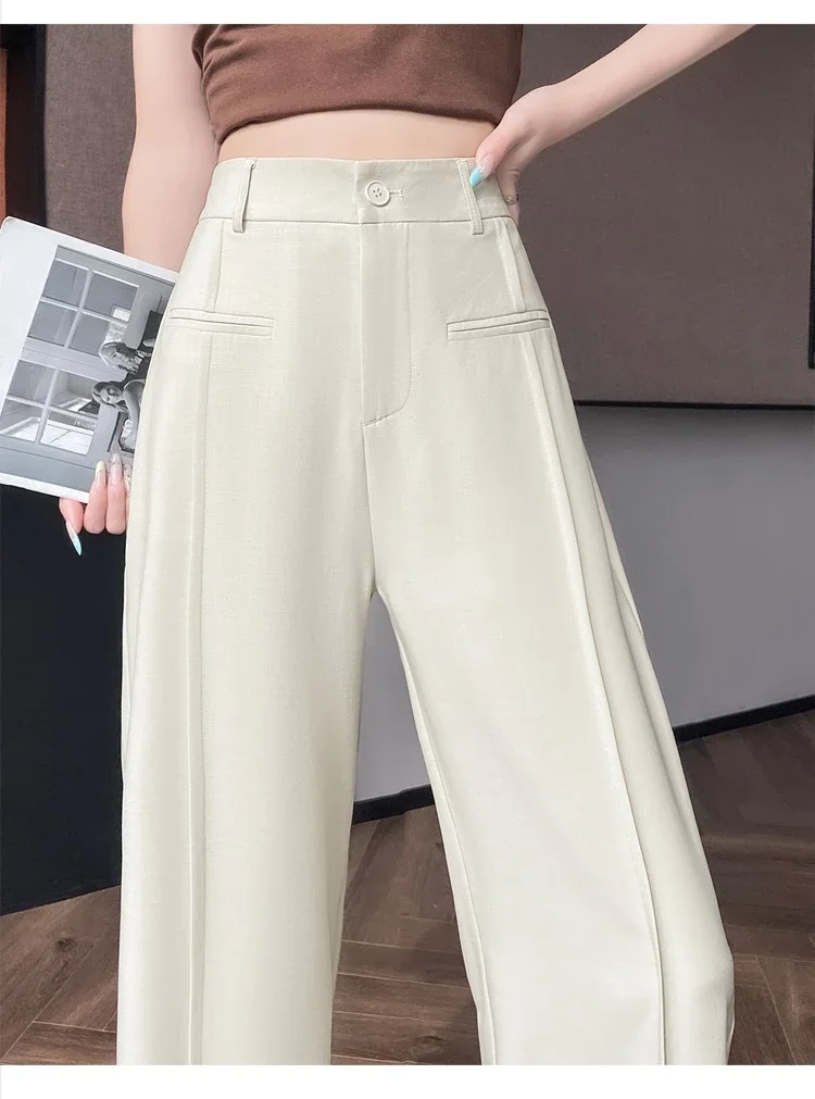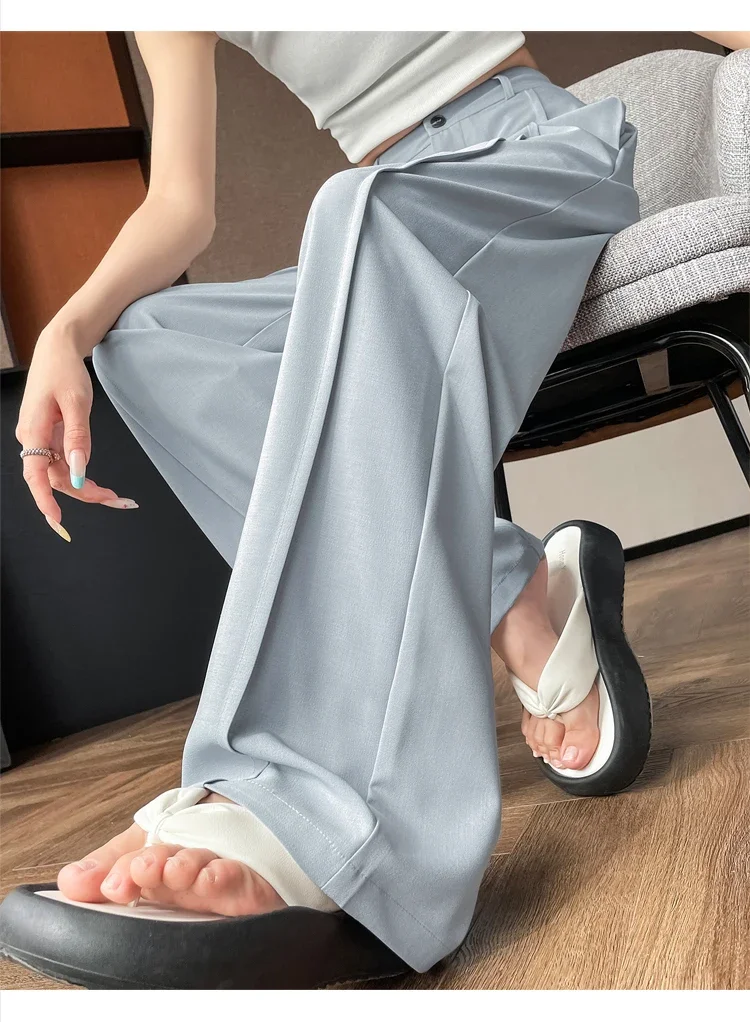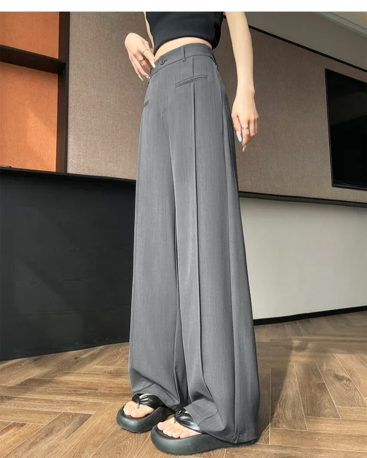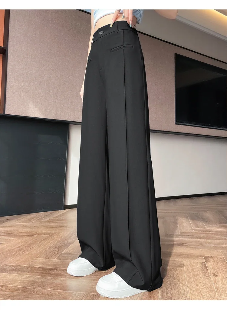Seoulish 2025 New High Waist Suit Wide Leg Women's Full Length Pants Summer Elegant Minimalism Straight Loose Trousers Female