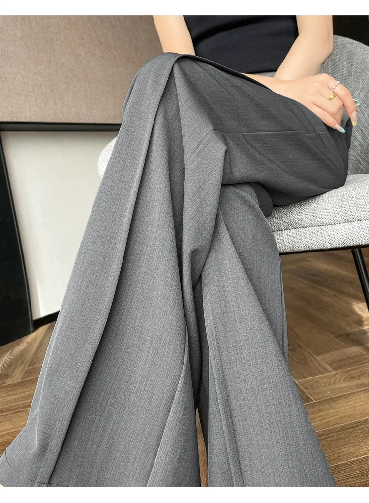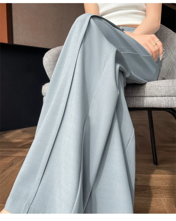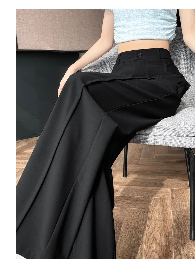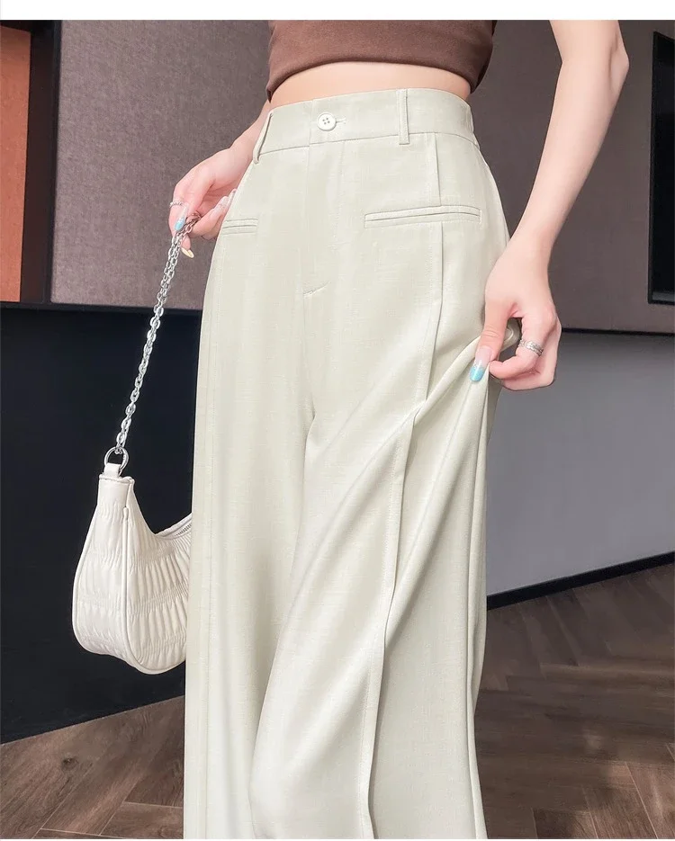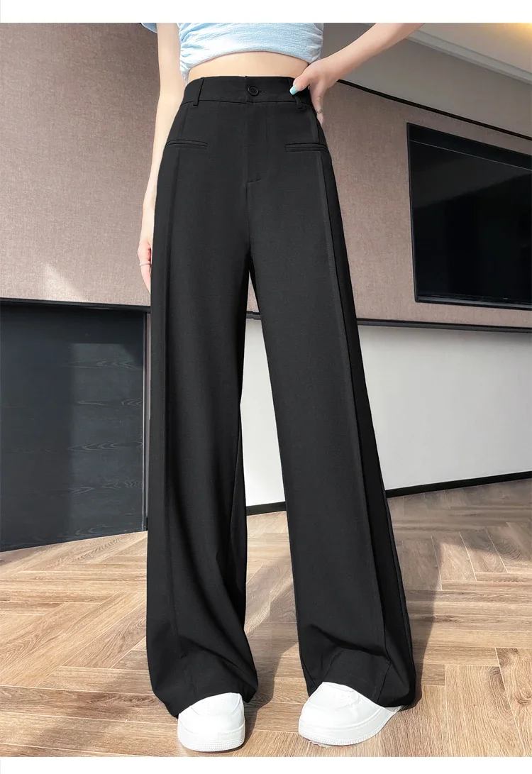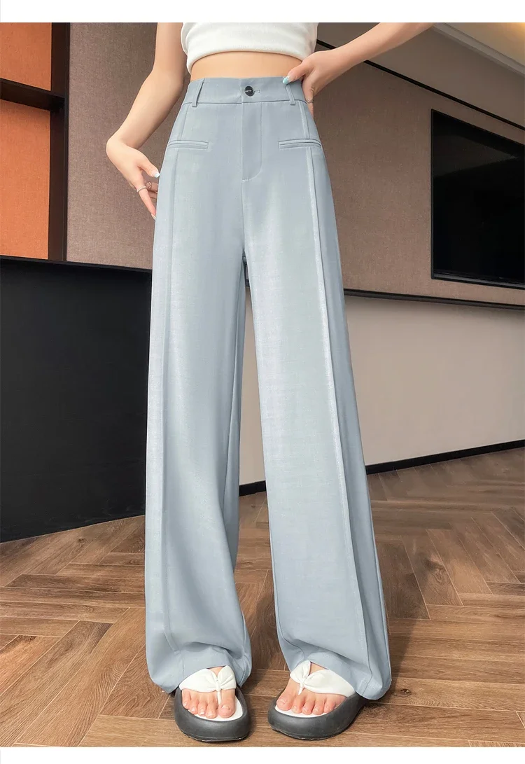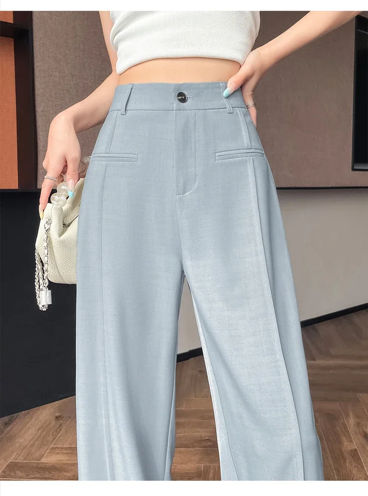 Seoulish 2025 New High Waist Suit Wide Leg Women's Full Length Pants Summer Elegant Minimalism Straight Loose Trousers Female