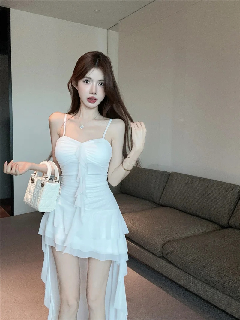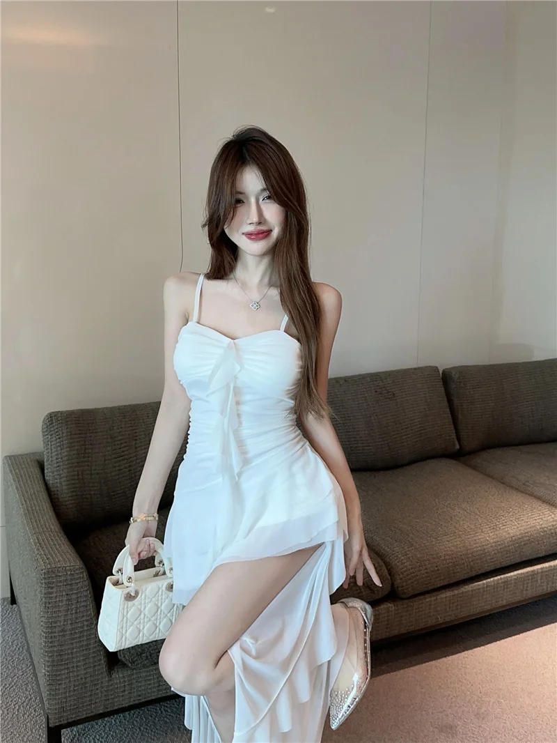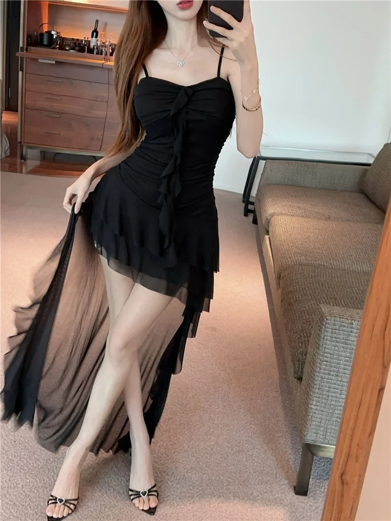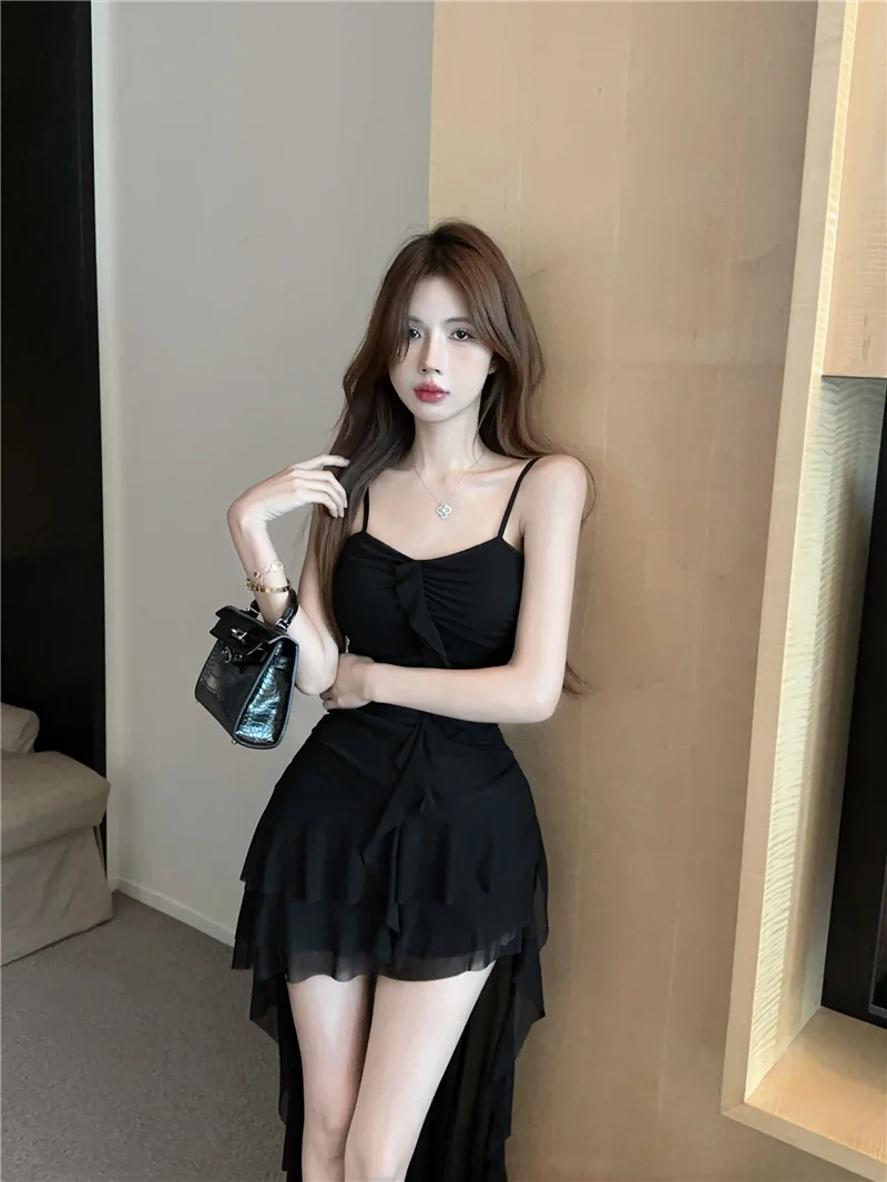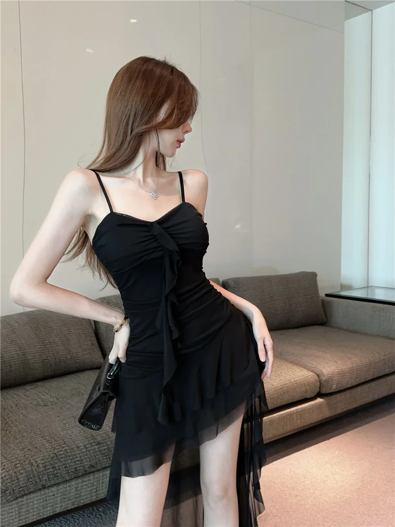 Summer slim fit French ruffle edge patchwork irregular sling dress women