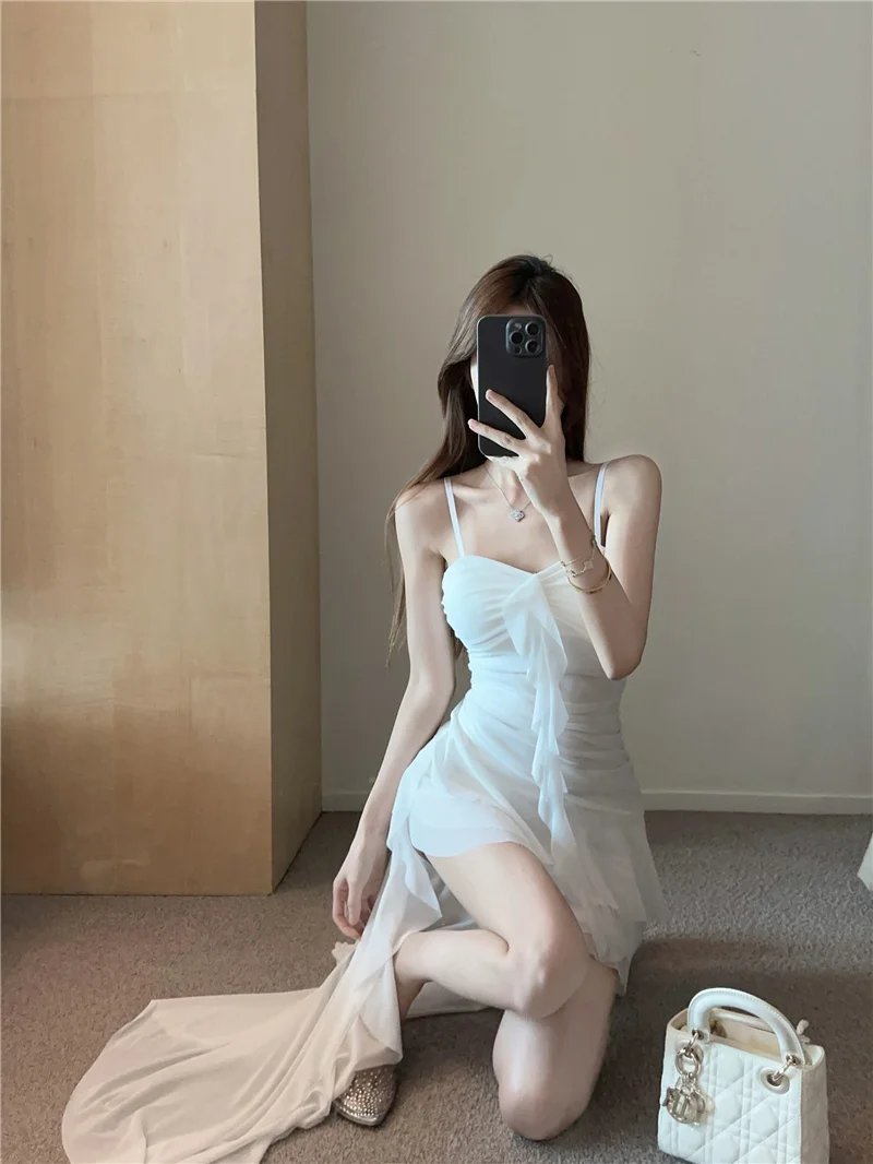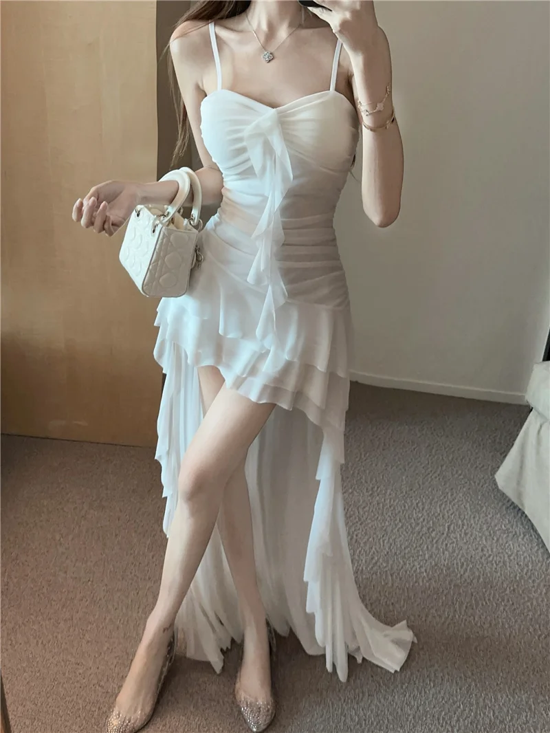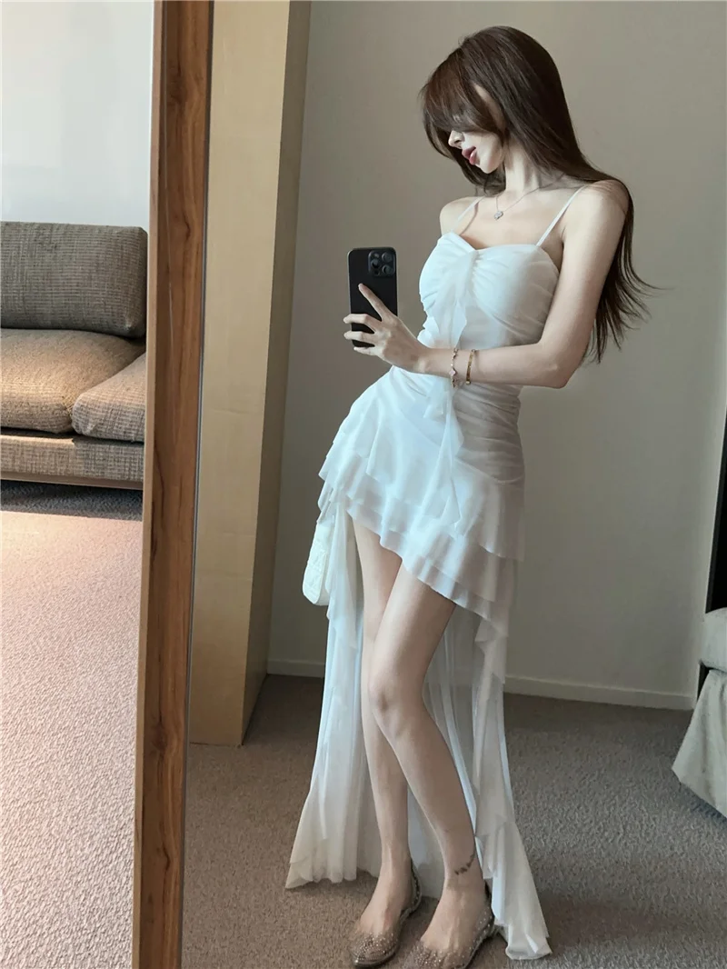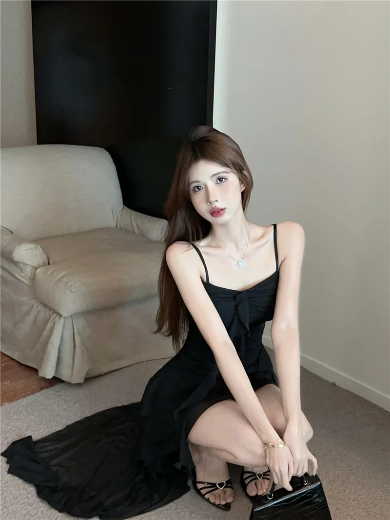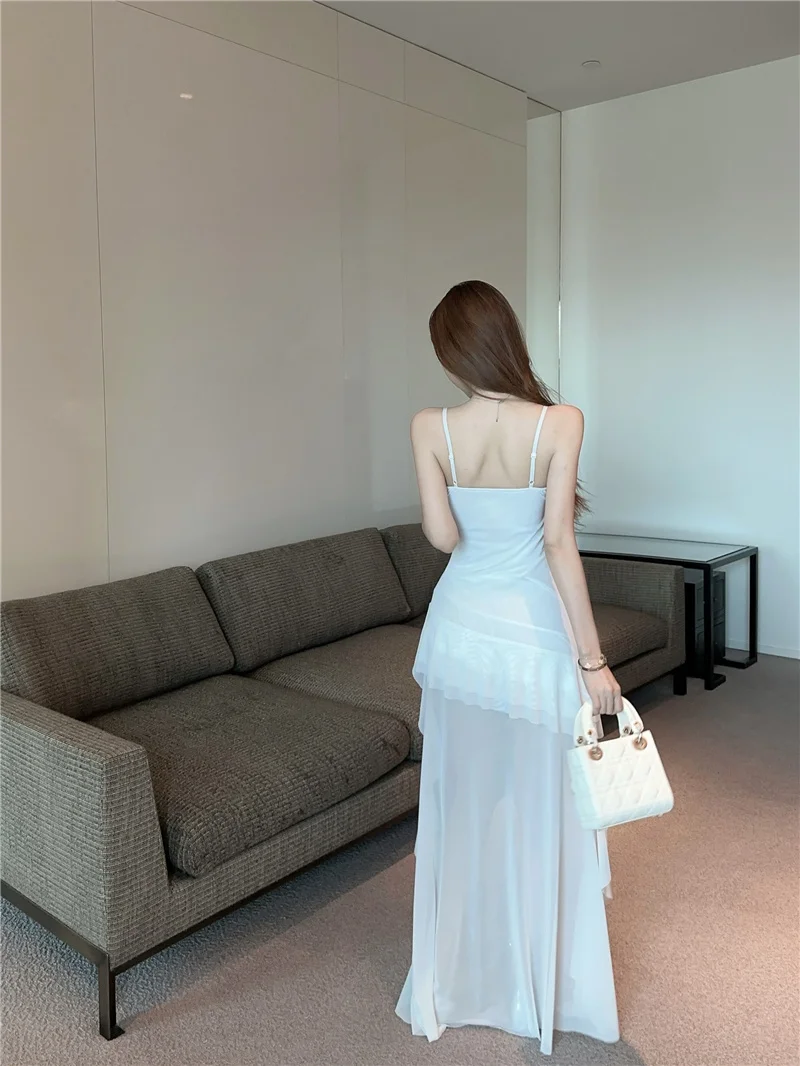 Summer slim fit French ruffle edge patchwork irregular sling dress women