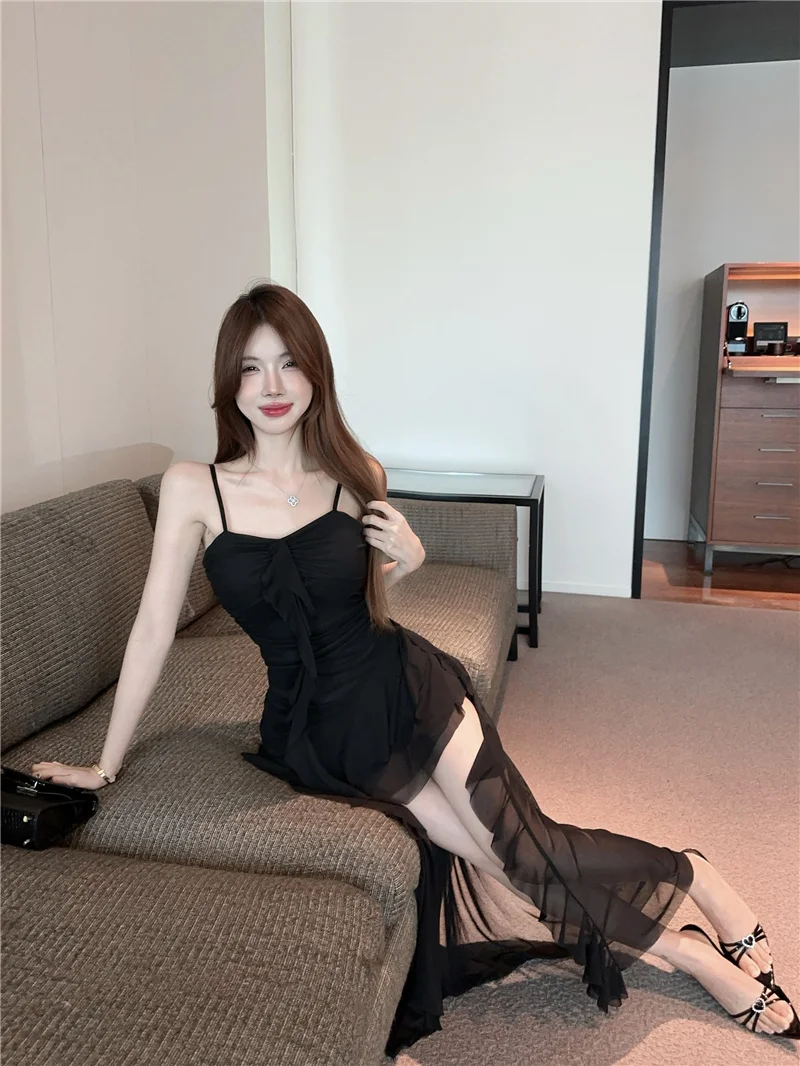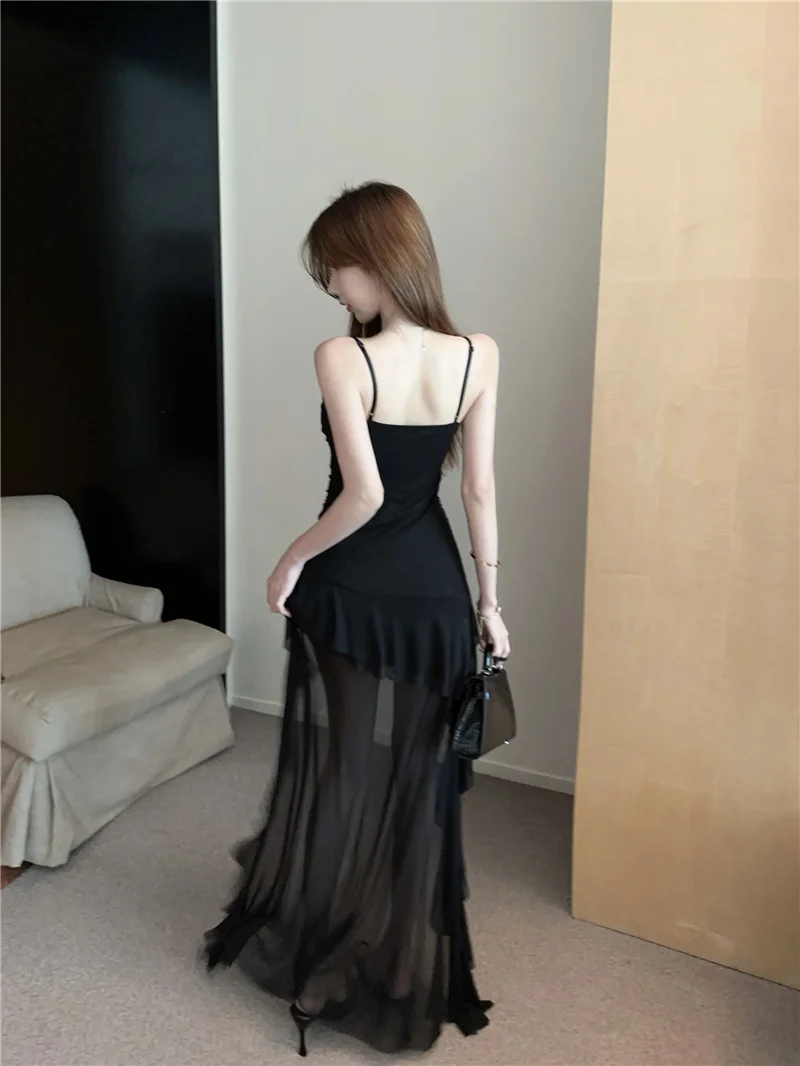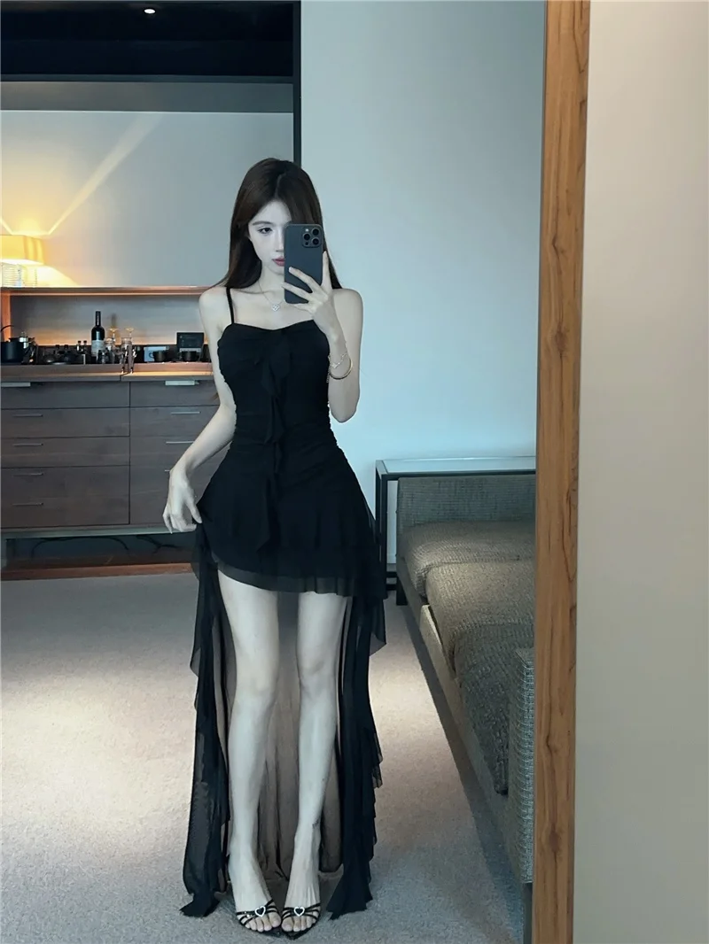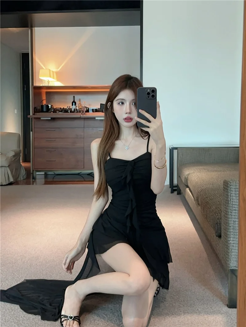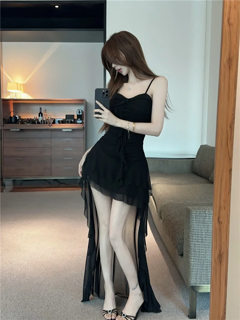 Summer slim fit French ruffle edge patchwork irregular sling dress women