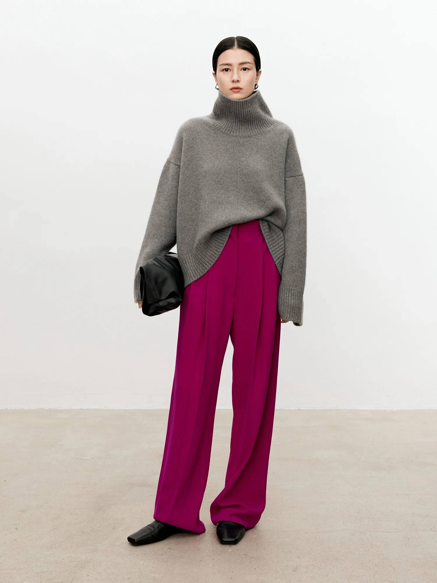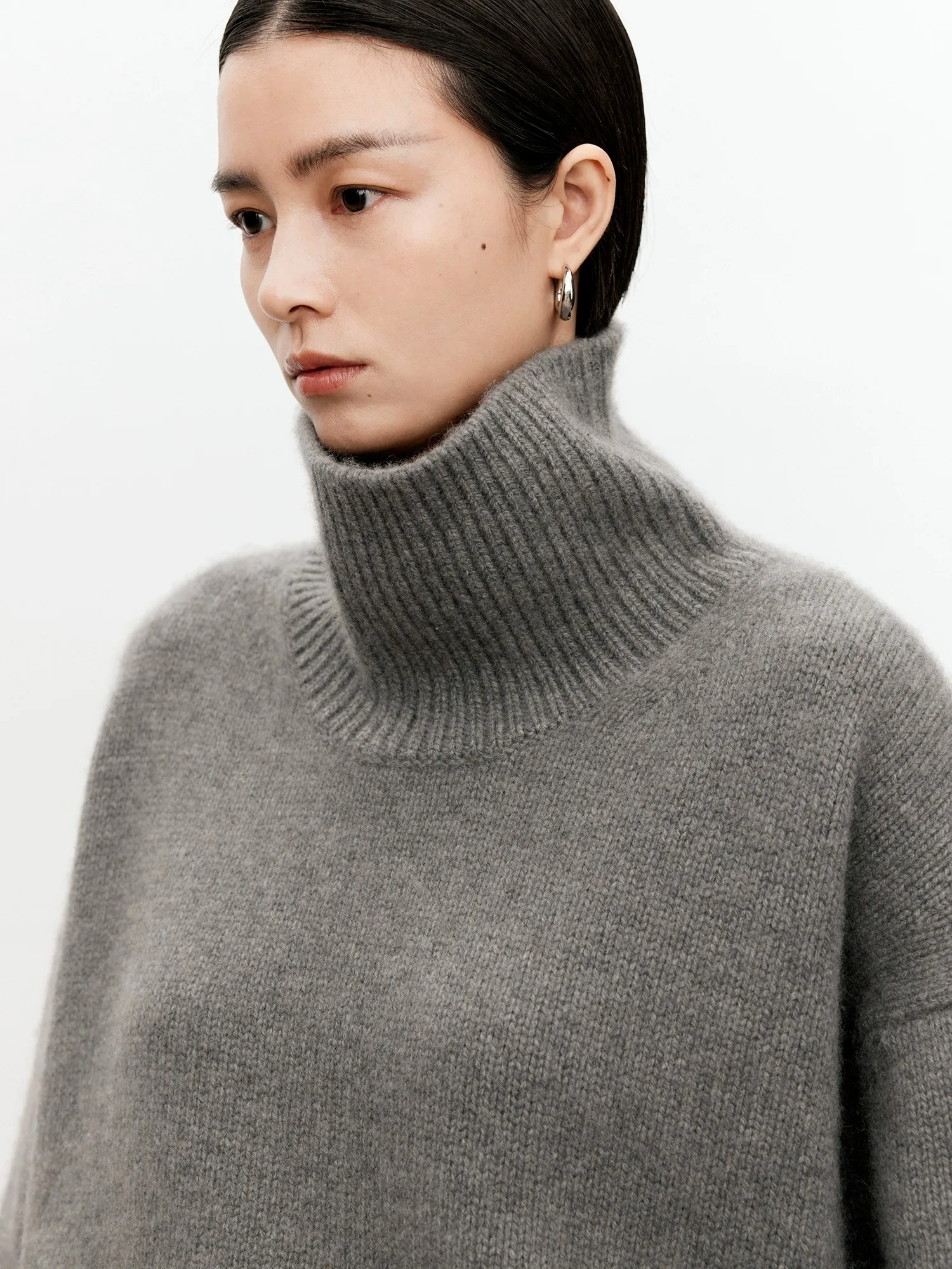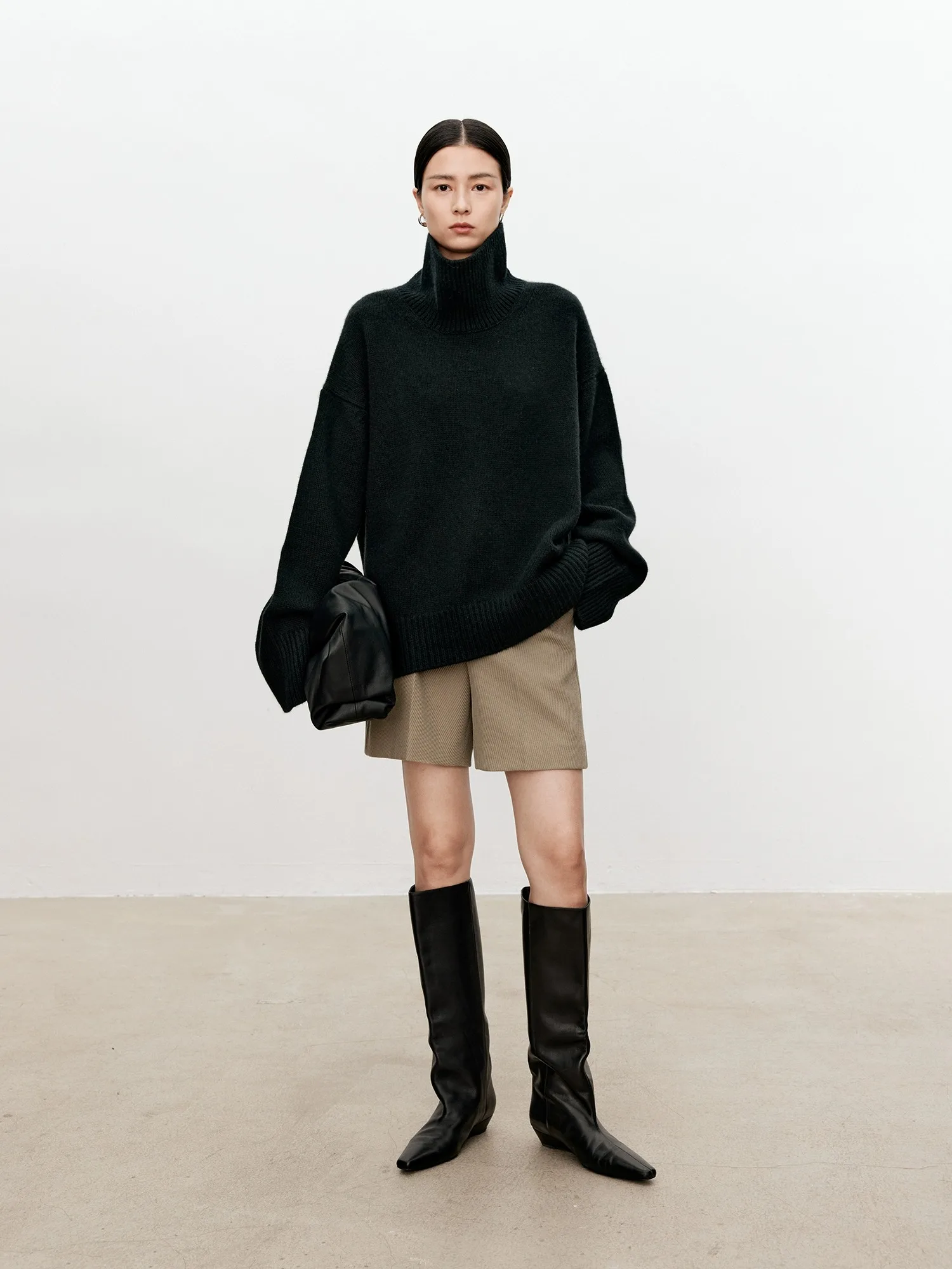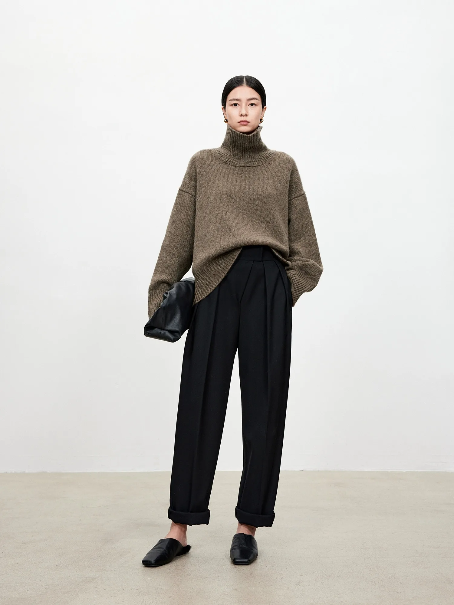Turtleneck pure cashmere sweater female loose and thick languid lazy wind pullover sweater knitting base WOOL sweater