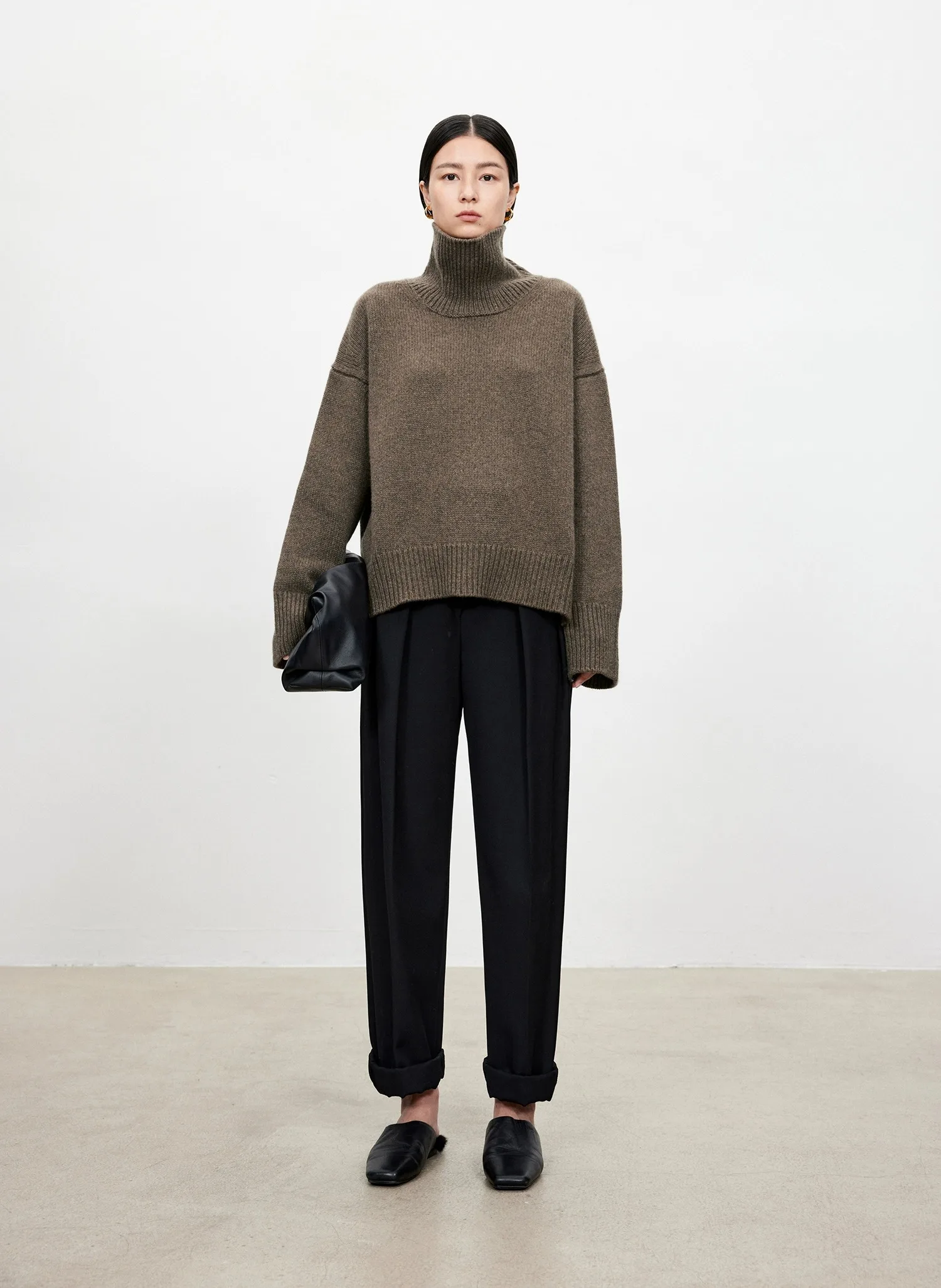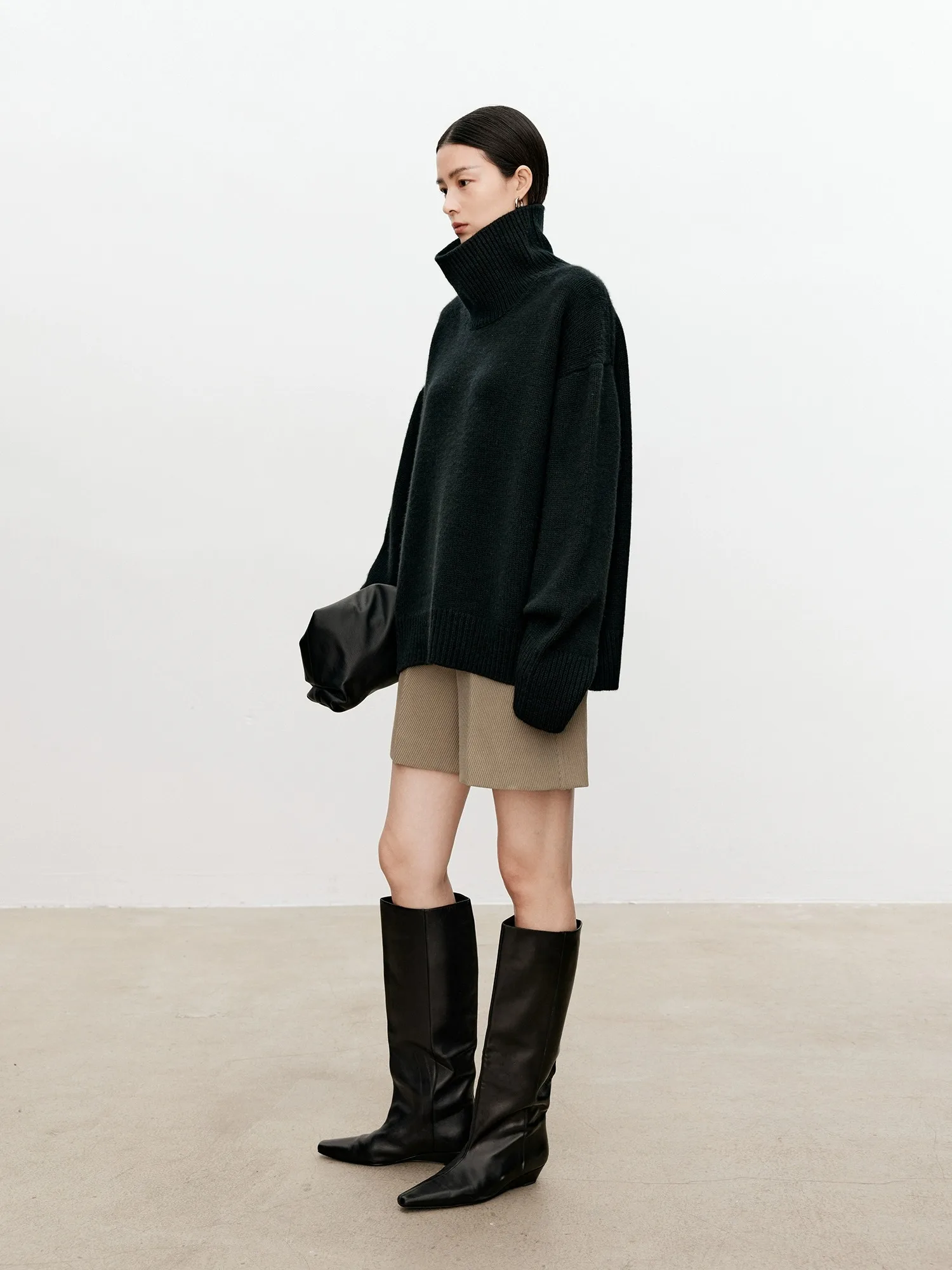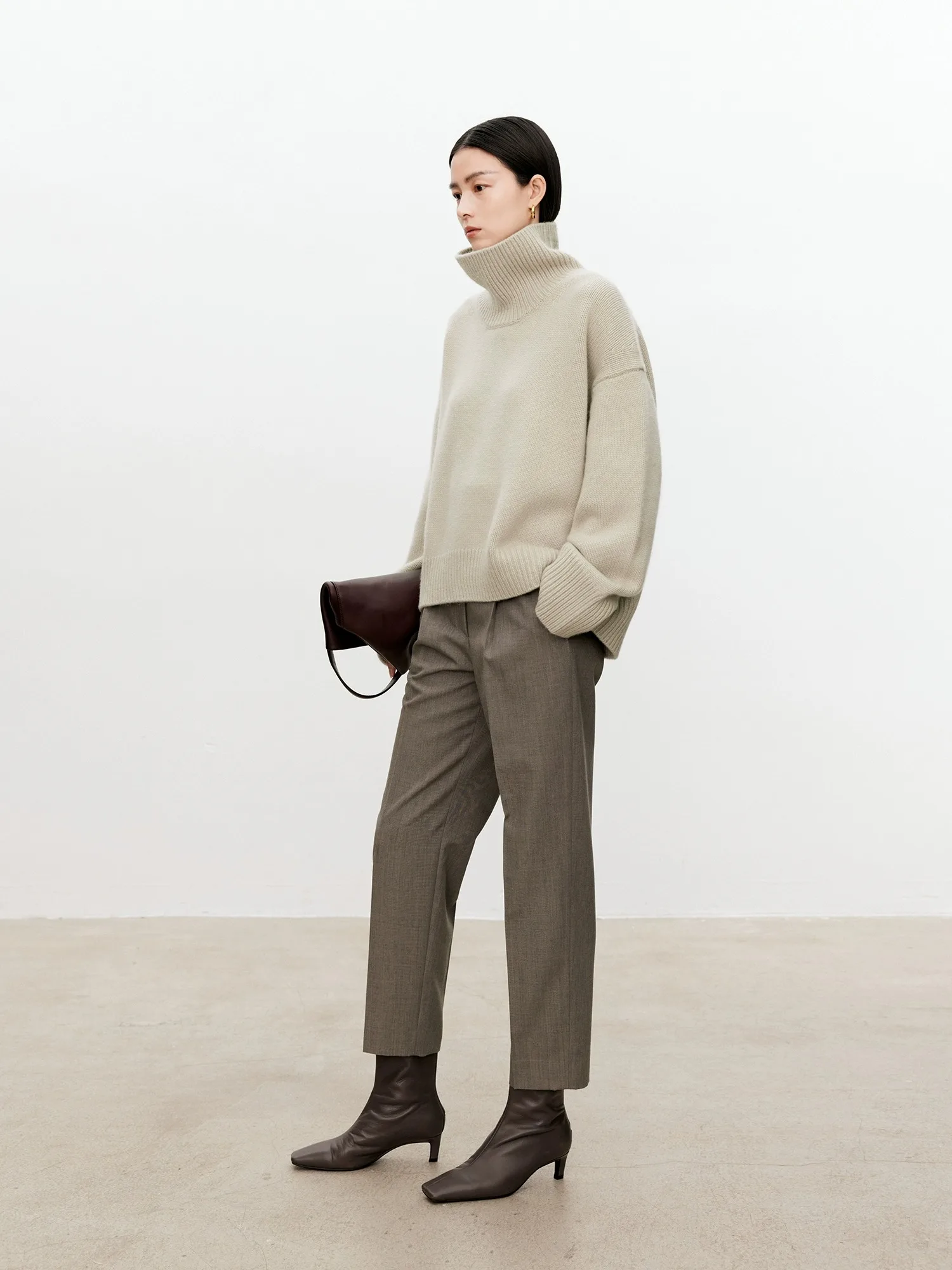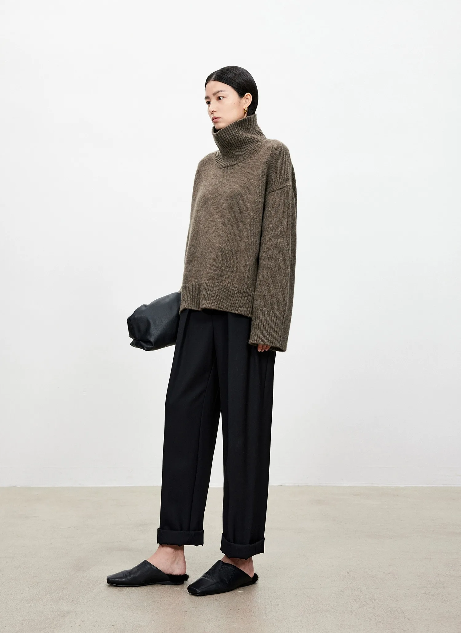 Turtleneck pure cashmere sweater female loose and thick languid lazy wind pullover sweater knitting base WOOL sweater