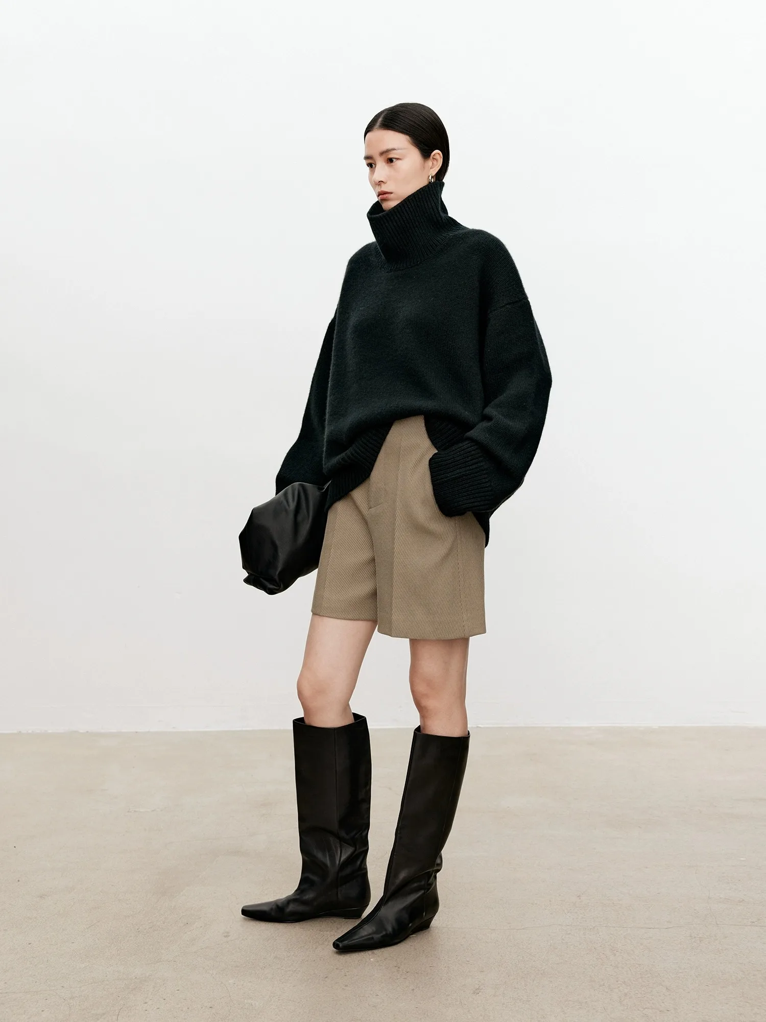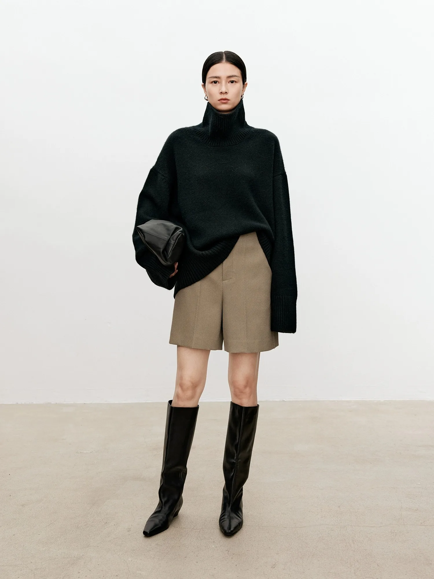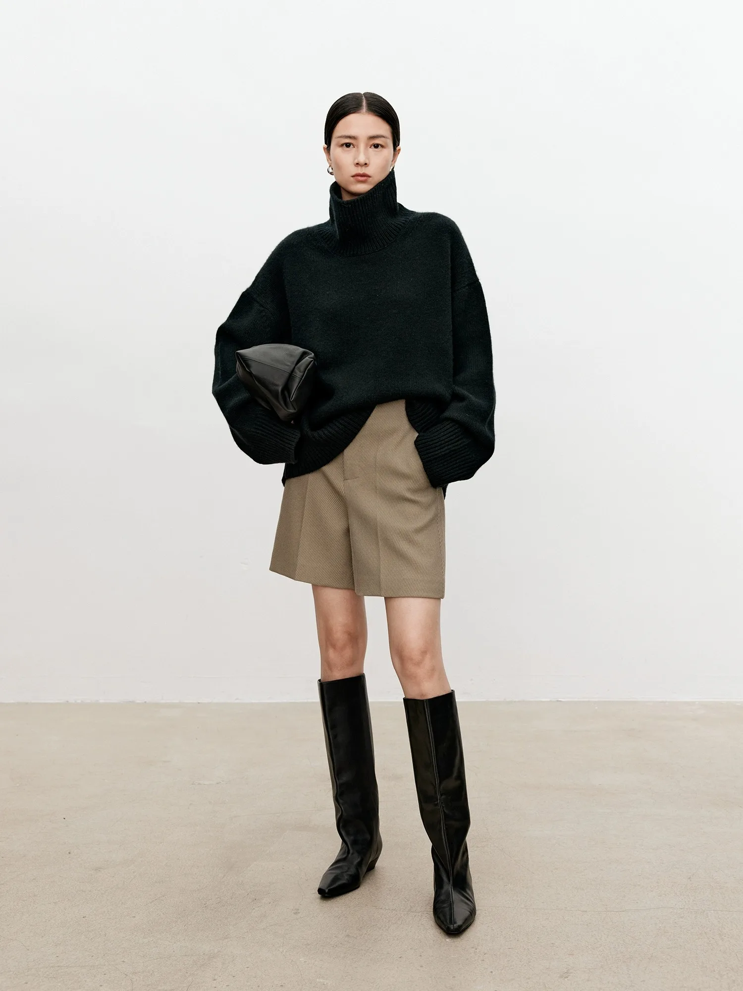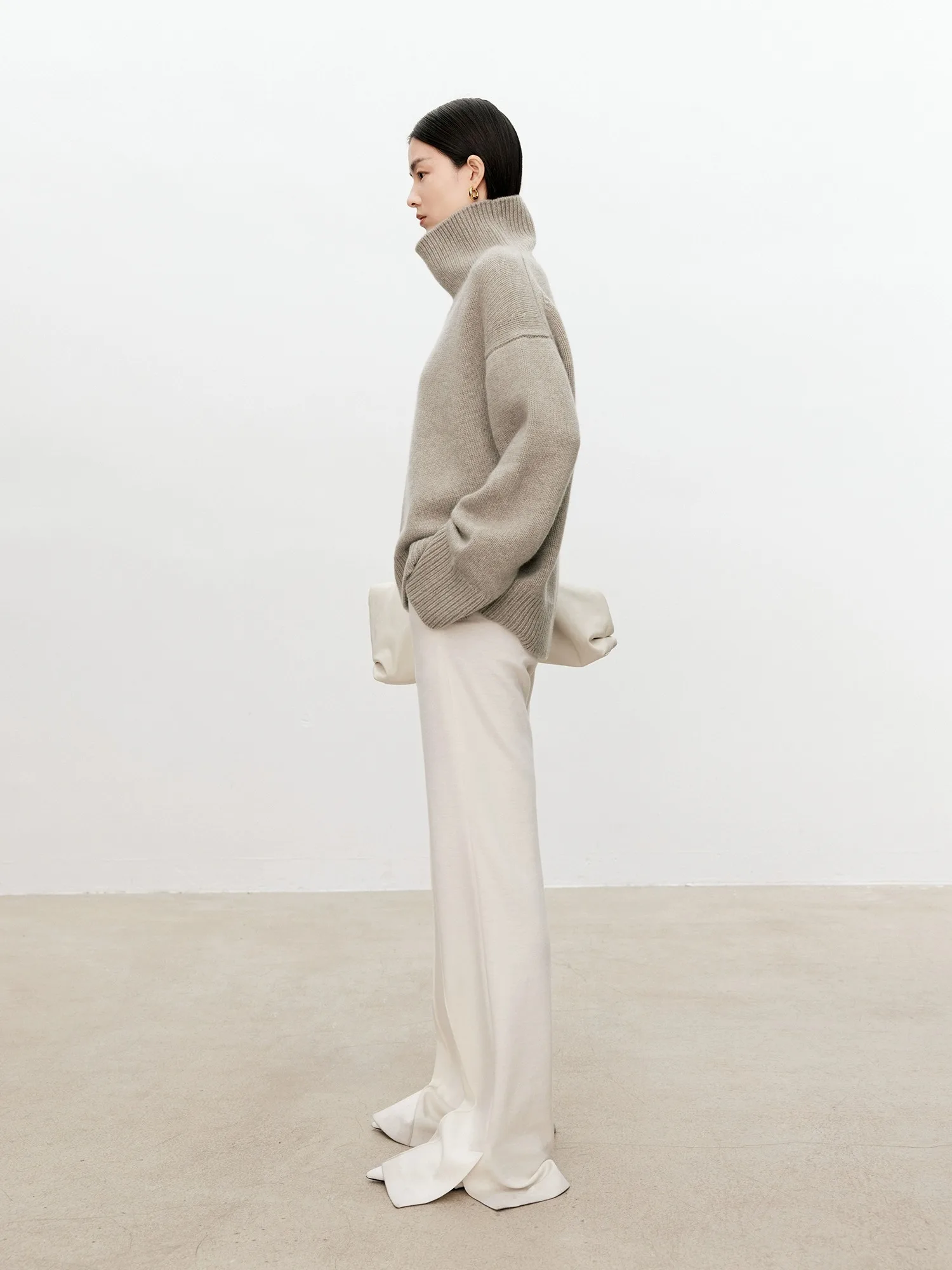 Turtleneck pure cashmere sweater female loose and thick languid lazy wind pullover sweater knitting base WOOL sweater